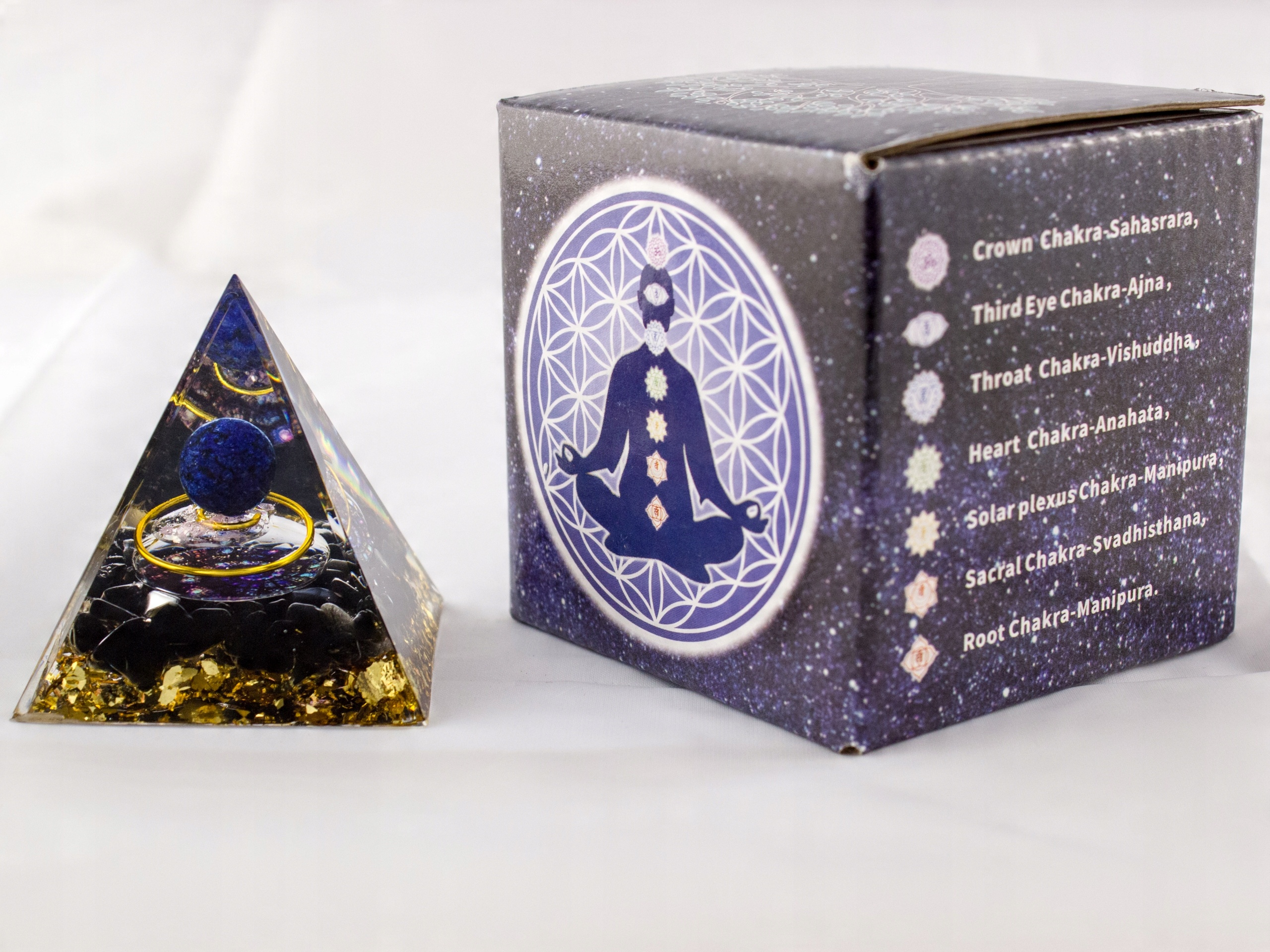 Эта пирамида оказывает благотворное воздействие на каждую из семи чакр, а благодаря камням и минералам, которые не только красиво выглядят, но и обладают собственной силой, энергией и целительством, усиливают ценный эффект очищения и разблокировки чакр, приносящий добро, счастье, здоровье.