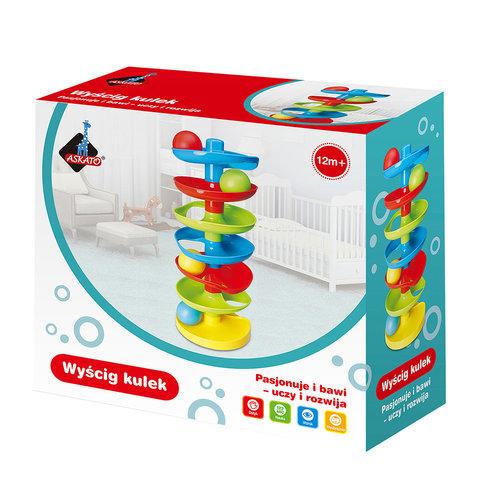 Гонка с мячом — отличная игрушка для развития ручного труда и понимания причинно-следственной связи.