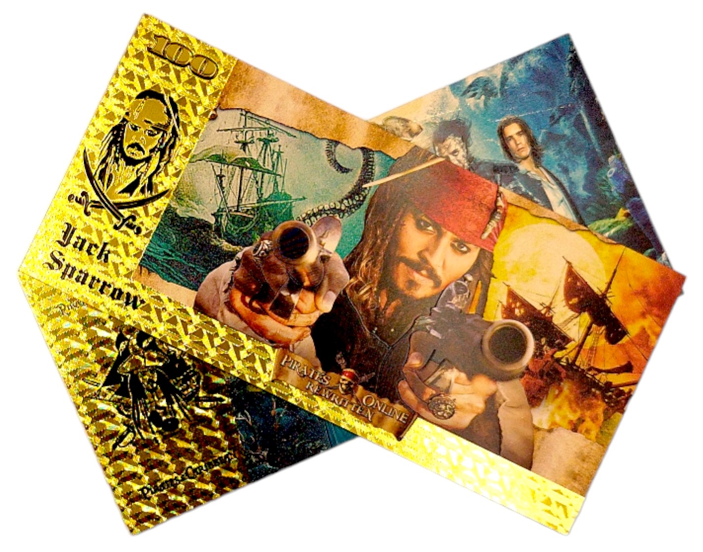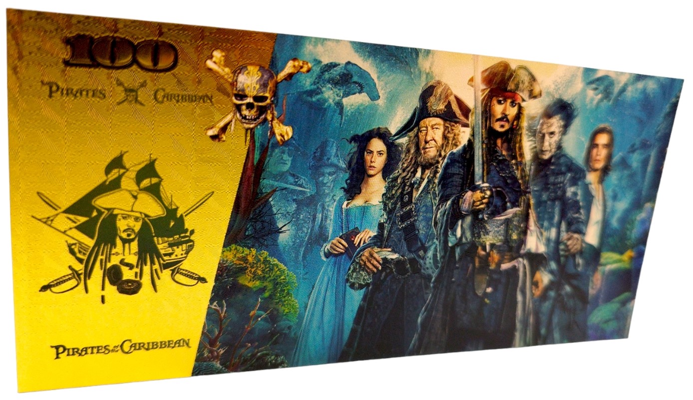 Красивая позолоченная банкнота «ПИРАТЫ КАРИБСКОГО БАССЕЙНА»