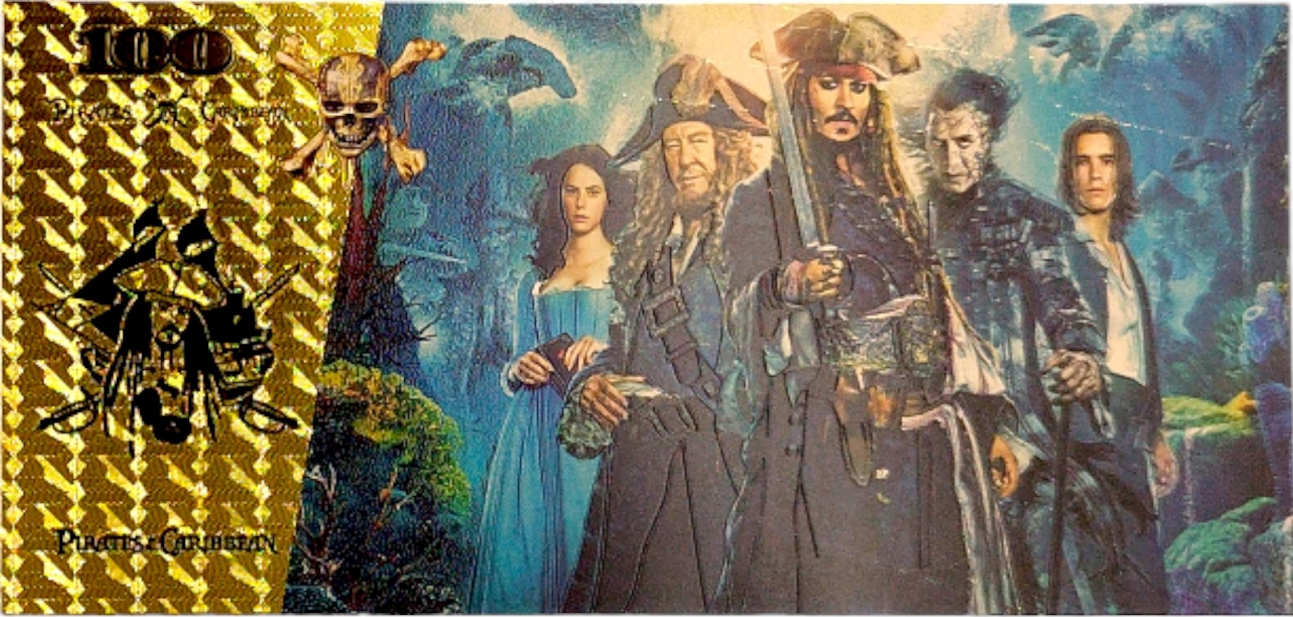 Красивая коллекционная банкнота с мотивом из фильмов "Пираты Карибского моря".