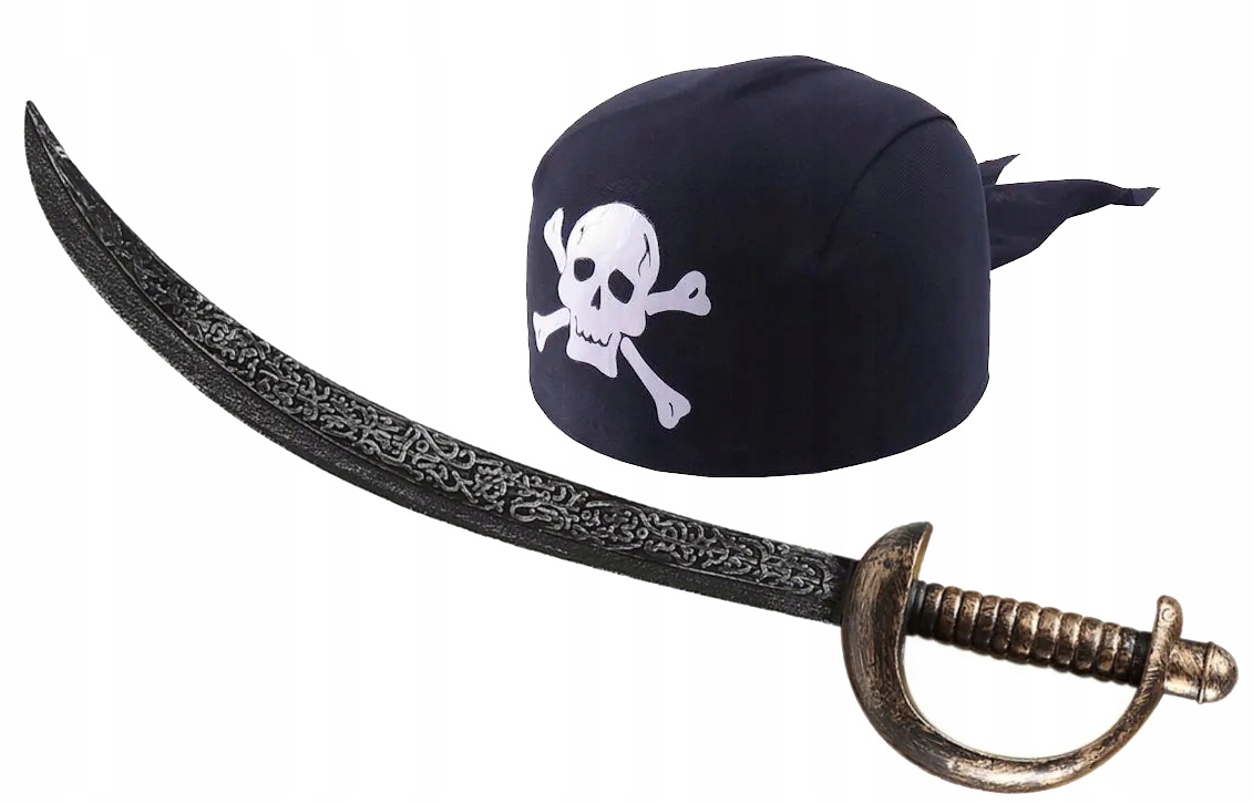 ПІРАТСЬКА ШАБЛЯ + ЧОРНА ШАПКА-БАНДАМА ДЛЯ КОСТЮМА ПІРАТА