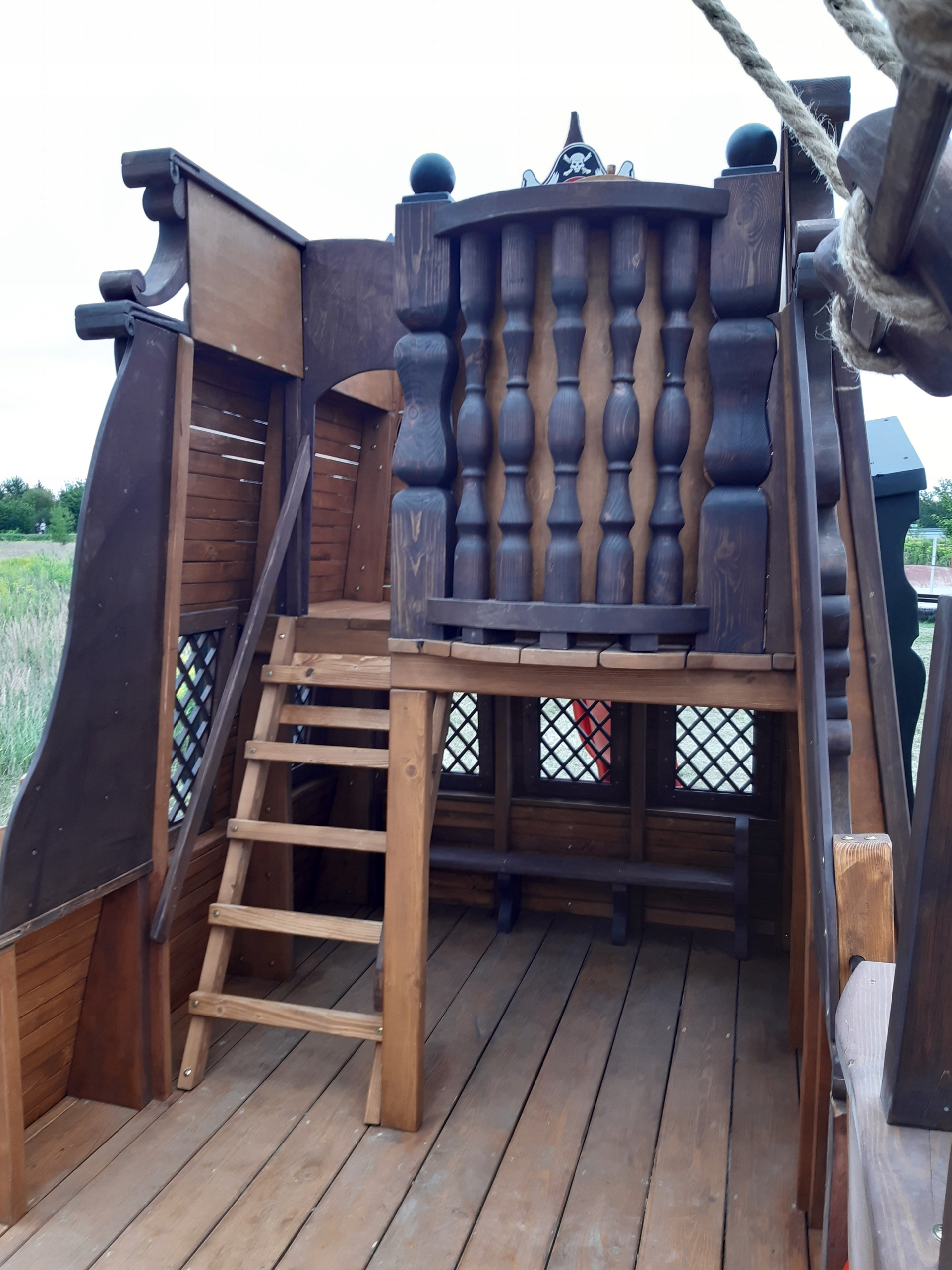 - размеры пиратского корабля: ширина 2,5 м; длина 9м с качелями; высота рулевой рубки около 4 м, высота мачты 5,5 м