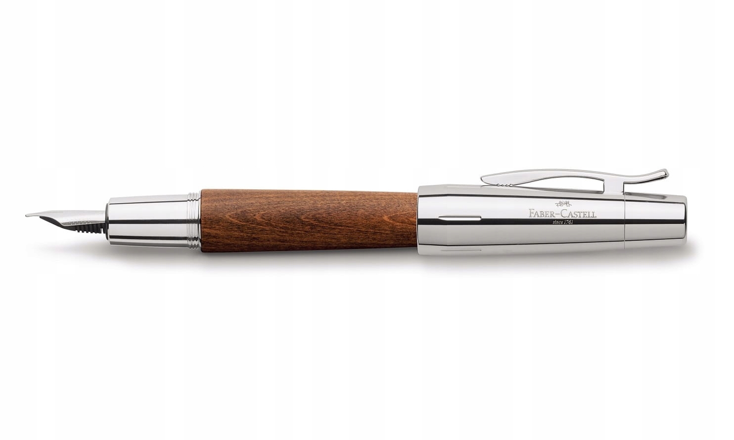 Коллекцию e-motion chrome wood отличает красивый корпус из грушевого дерева. Крышка и накладка из хромированного полированного металла. Перьевая ручка оснащена поршневым механизмом и пером из высококачественной нержавеющей стали.