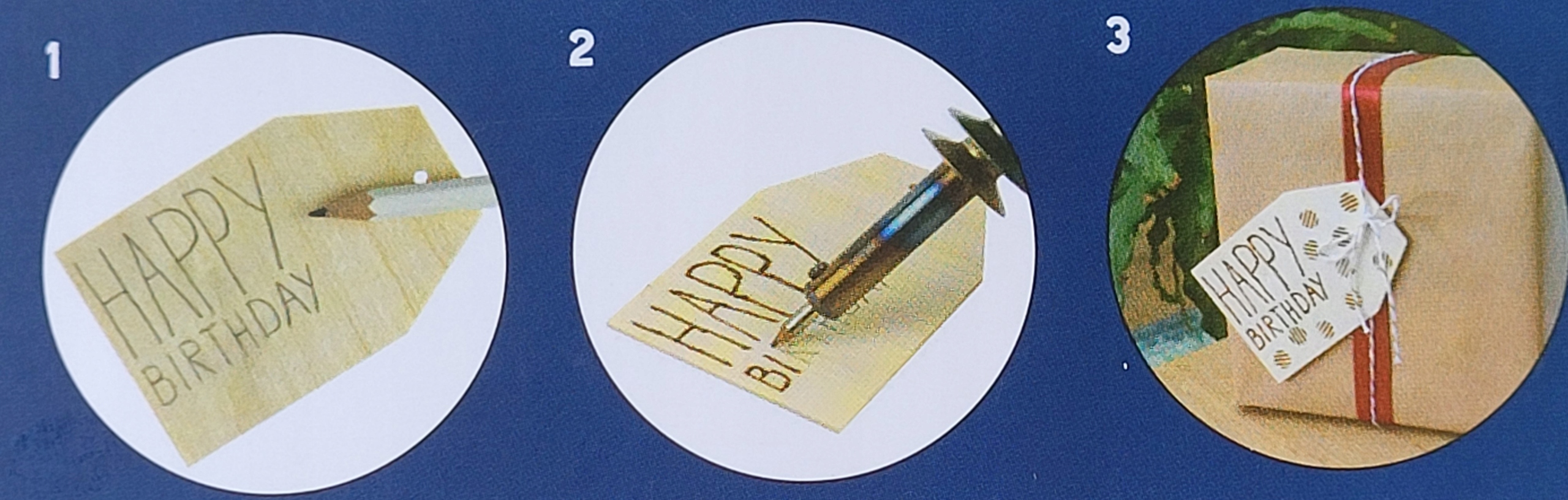 Приспособление подходит для всех пород дерева и пробки. В комплект входят 9 наконечников, 3 выжигательных штампа и трафарет с буквами.