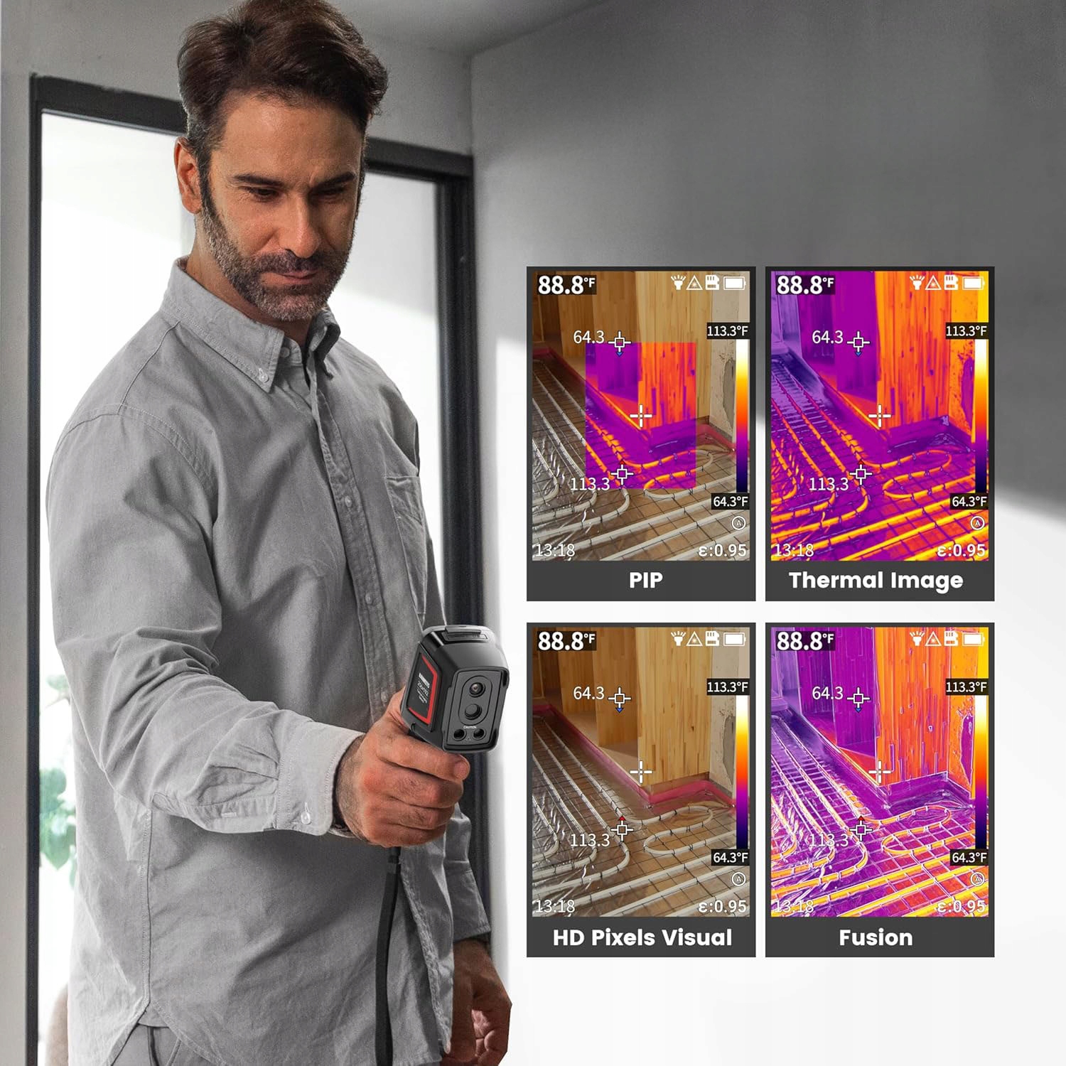 Чрезвычайно выраженные изображения и точные измерения: Kaiweets KTI-W02 Теплоизуализация с ультра-высоким разрешением 256x192, использование новейшей технологии для улучшения составного изображения Sharpir, четкости изображения изображения в верхней части рынка, более выраженное и более интуитивное наблюдение; Термическая чувствительность ≤ 45 мк, температурное разрешение до ± 1 ° F, температурная ошибка ± 2 ° C или ± 2%, благодаря которой результат измерения может быть более точным, а диагноз задач более надежным