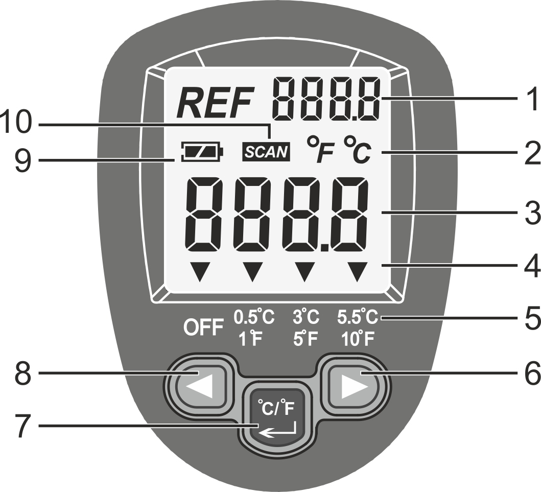 Дисплей подсвечивается до 4 цветов. Установив точку отсчета вручную, вы легко сможете измерить разницу температур.