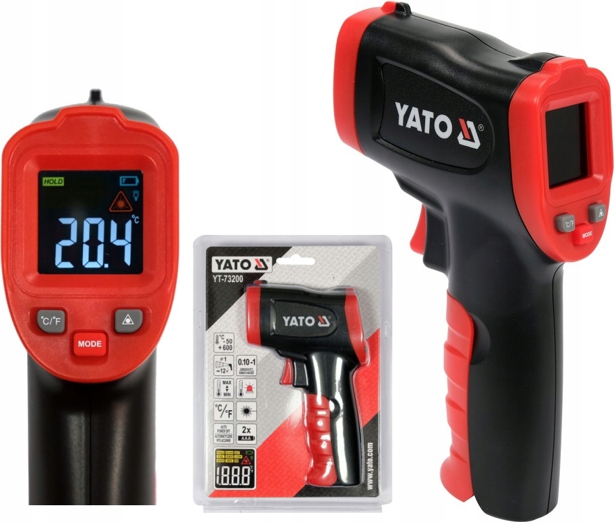 ➡️ИК-излучение - каждый объект, в зависимости от его текущей температуры, излучает адекватное инфракрасное излучение. ИК-термометр использует оптику для фокусировки этого излучения на инфракрасном датчике, который сначала преобразует его в тепло, а затем в электричество. Затем значение энергии считывается и преобразуется в показание температуры. Весь процесс в пирометрах YATO занимает не более 0,5 секунды.