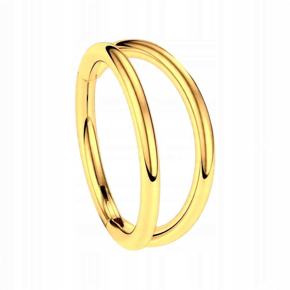 Золотая серьга с элегантным двойным кольцом, изготовленным из высококачественной стали, покрытой прочным PVD -покрытием, которое придает ему роскошное золотое глянцевое . Его минималистский дизайн представляет собой идеальное сочетание современности и классики, благодаря которой он является универсальным дополнением к любой стилизации. Деликатная форма и отличная отделка заставляют эту серьгу привлекать внимание тонким светом, добавляя элегантность и стиль.