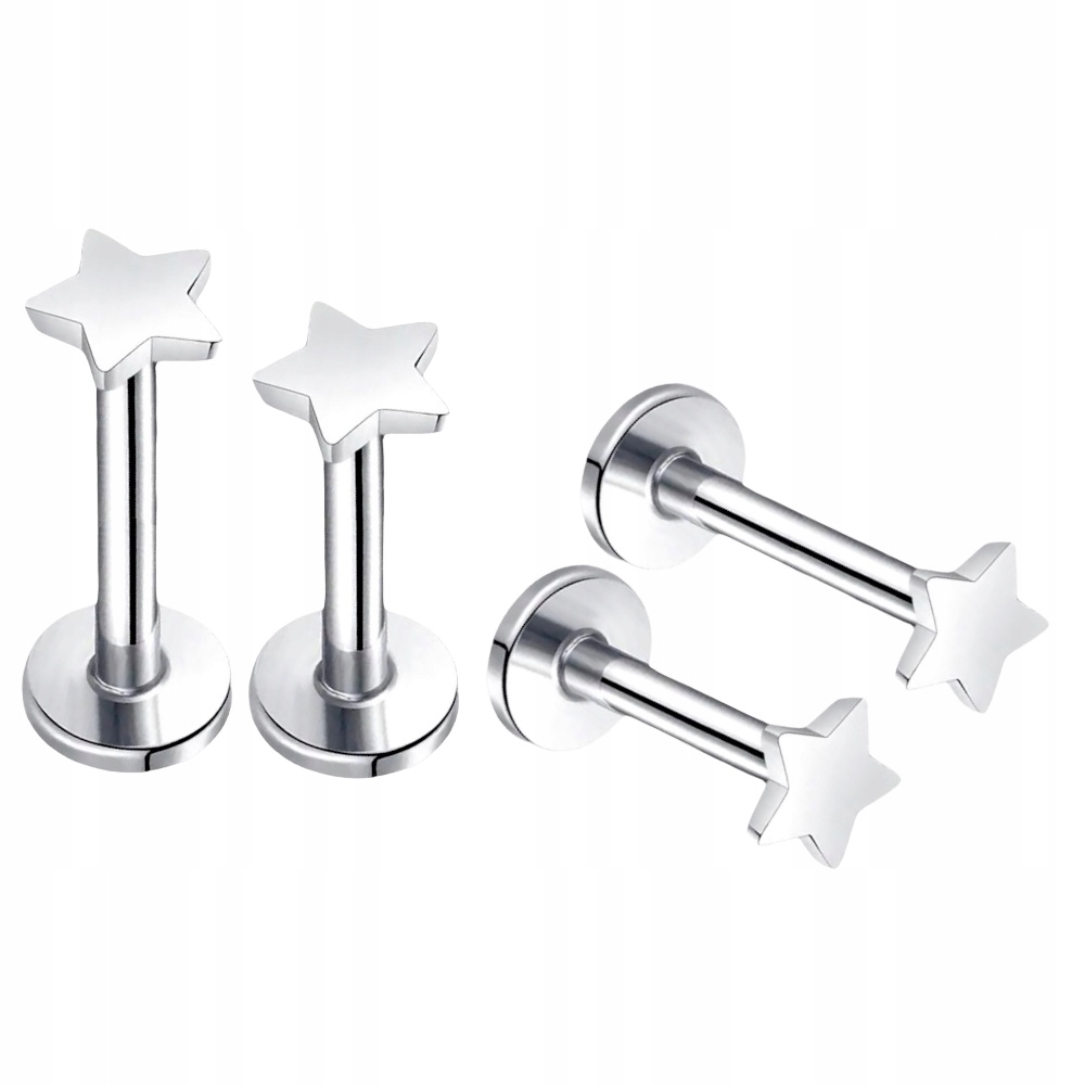 Титан, серебро Лабрет со звездообразным колпачком, размер 1,2/6/3