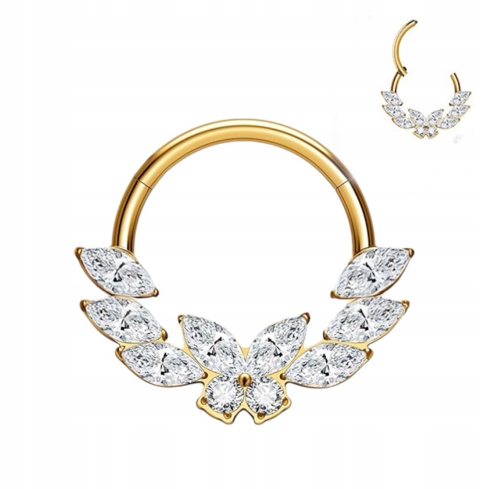 ПИРСИНГ Tytan Clicker GOLD с БАБОЧКОЙ ПЕРЕГОРОДКОЙ МАКОВИНОЙ 1,2/10