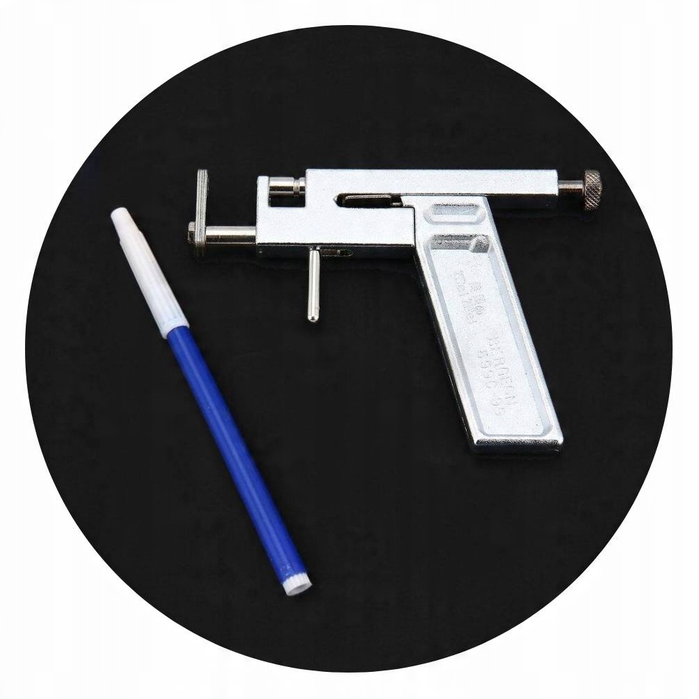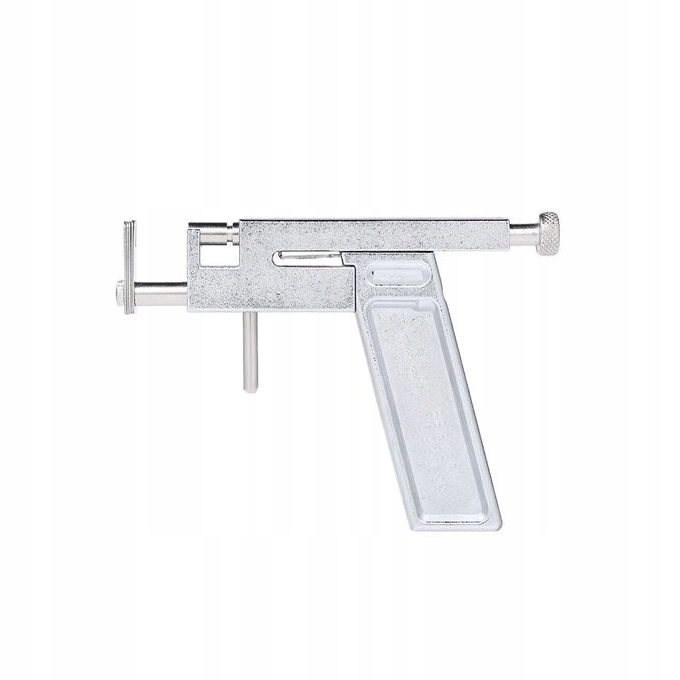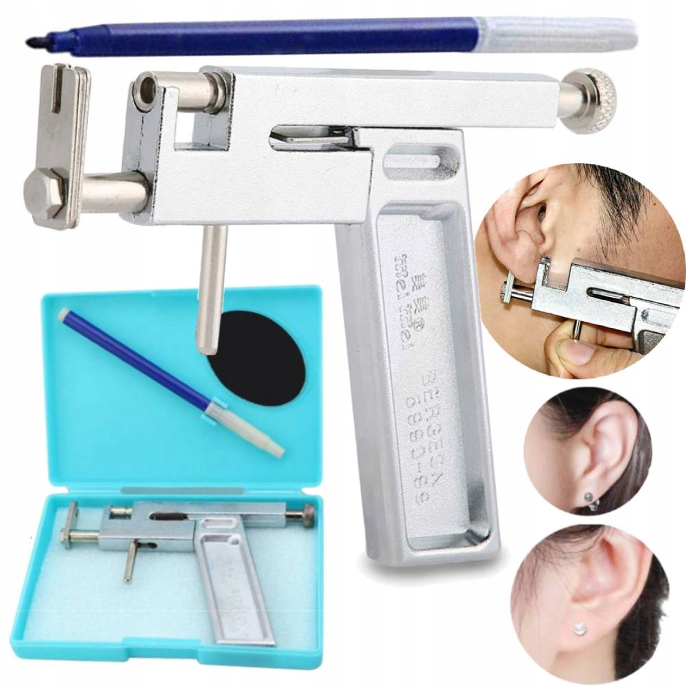 Профессиональным стальным пистолетом делают отверстия для сережек в ушах без использования иголок. Пирсинг можно легко и быстро сделать дома, сэкономив время и деньги.