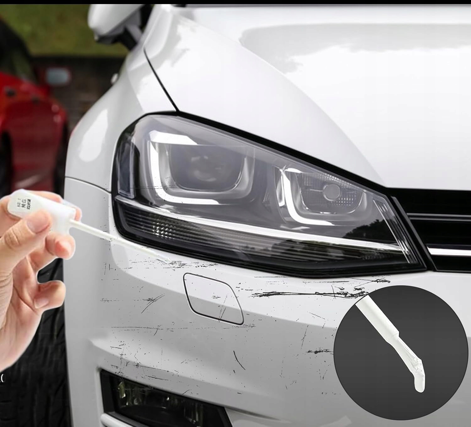 попрощайтесь с функциями! белый . Благодаря этому инструменту Удаление небольших царапин с вашего автомобиля будет простым и эффективным . Консилер содержит агент наполнителя , который не растворяет лак , что означает, что не повредит вашему автомобилю .