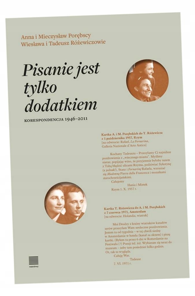 Книга «Писание – лишь дополнение. Переписка 1946-2011» знакомит читателей с двумя важнейшими личностями польской литературы и культуры XX века. С одной стороны, у нас есть известная фигура Тадеуша Ружевича, одного из самых выдающихся польских писателей, наиболее часто переводимого на иностранные языки, который, наряду с Чеславом Милошем и Виславой Шимборской, в течение многих лет воспринимался как главный польский претендент на Нобелевская премия по литературе. С другой стороны, у нас есть Мечислав Порембский, тоже писатель, но прежде всего уважаемый и ценимый искусствовед, преподаватель Академии изящных искусств в Варшаве, профессор Ягеллонского университета с 1970 года, хранитель Национального музея в Кракове с 1970 года. 1974 г., в 2012 г., за несколько месяцев до смерти, удостоен Литературной премии Гдыни за книгу «Встреча с Авелем». Сборники писем — это, с одной стороны, запись дружбы двух интеллектуалов и деятелей культуры, но и диалог по вопросам искусства, литературы и общественно-политических вопросов. Они несут и чисто литературную ценность, которую дополнительно подкрепляют прилагаемые поэтические тексты, рисунки, фотографии, вырезки из прессы и театральные программы. "Согласно названию книги - Письмо - это всего лишь дополнение - самые важные слова между друзьями, вероятно, произносились не в письмах, а в прямых, с глазу на глаз разговорах, во время частных "симпозиумов", прогулок по Устрони, встреч в Варшаве и «где-то в мире» — в Венеции или Париже. Собранные здесь письма — лишь отголосок общих переживаний, воспоминание или анонс разговора, знак жизни и сигнал памяти. Но, прежде всего, они. являются подлинным, бесценным свидетельством духовных дилемм и сомнений, трогательным свидетельством стремлений и надежд, иллюзий и восторгов, необычайной духовной связи, братского сообщества, объединяющего друзей. «Это не то письмо, которое я хотел написать», — признается Ружевич. но если вдумаешься, то узнаешь, о чем это ненаписанное письмо, тем более, что оно о чувствах, а не о мыслях. Мы, наверное, чувствуем то же самое, поэтому письмо — это всего лишь дополнение» (Крыстина Черни, фрагмент вступления)
