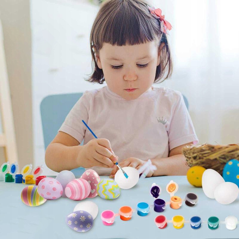 Покрасьте пенопластовые яйца, используя прилагаемый набор краски и кисть – единственное ограничение – ваша фантазия!