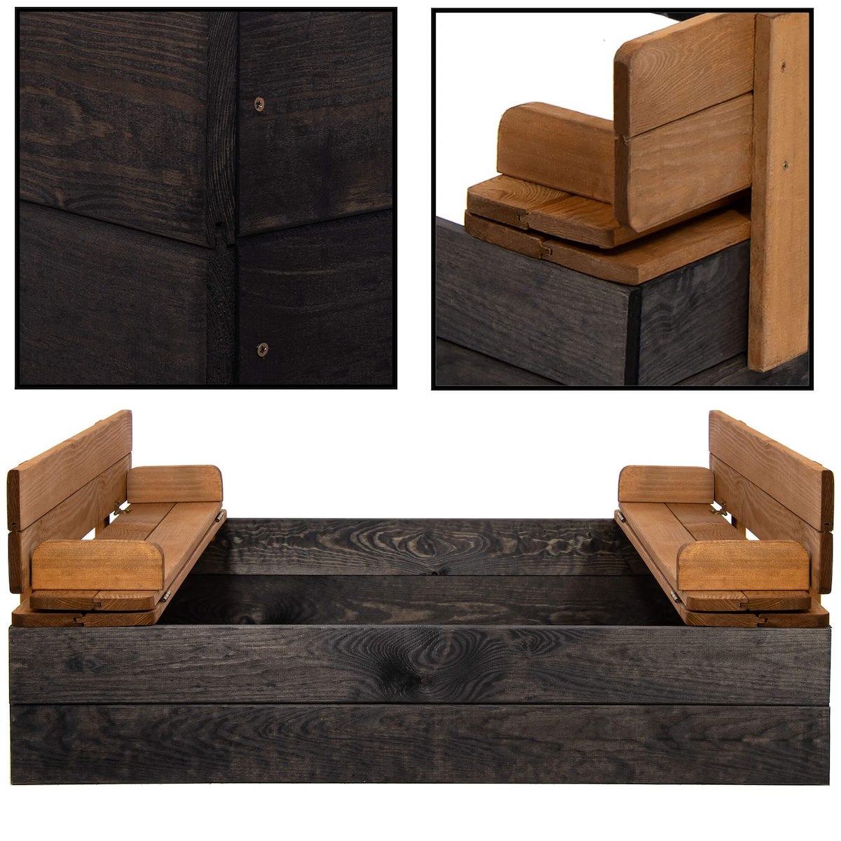 ДЕРЕВЯННАЯ ПЕСОЧНИЦА ПРОПИТОЧНАЯ, ЗАКРЫТАЯ 100х100см С ЛАМКАМИ ПРОИЗВОДИТЕЛЬ