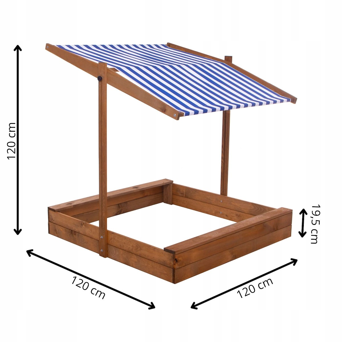 Навес можно опустить благодаря специальным направляющим на вертикальных стойках, что позволяет легко превратить навес в Крышка песочницы, защищающая ее от нежелательной грязи, например, от листьев, падающих с деревьев, или от загрязнений, вызванных присутствием животных. За игрушки также можно не беспокоиться - они могут оставаться под навесом, всегда на месте, без необходимости собирать их после каждой игры.