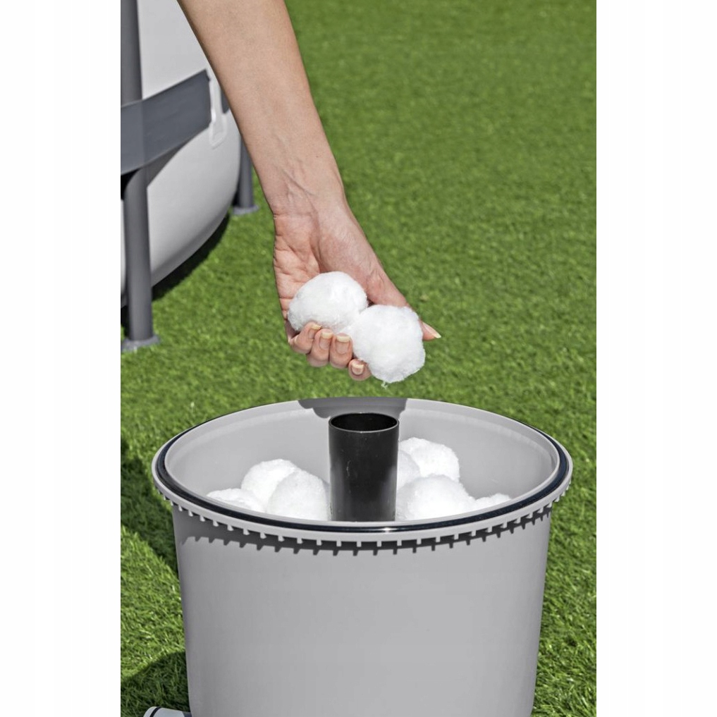 Насос фильтрования также работает с 240 г фильтрационными шариками , которые обеспечивают высокую эффективность фильтрации . Фильтруя шарики эффективно удаляют загрязнение из воды, обеспечивая чистоту и прозрачность в бассейне, и их использование так же эффективно, как кварцевый песок.