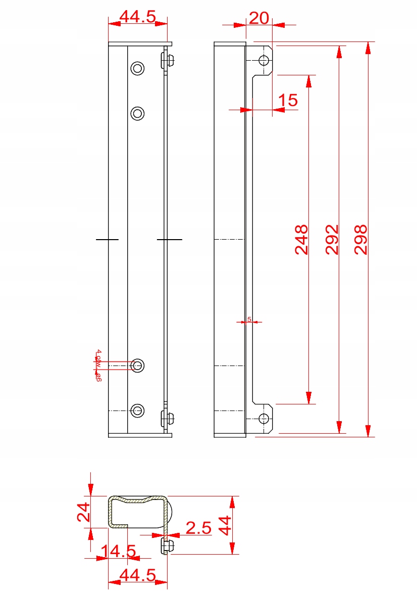Привинчиваемая коробчатая сцепка, размеры В 298 мм, Д 44,5 мм.
