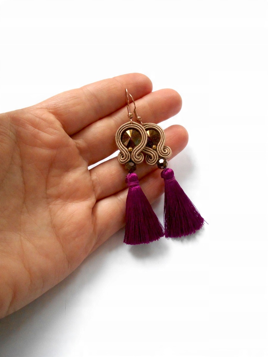 рука, тщательно и твердо изготовленные серьги. Подвешен на розовой золотой стали. Задняя часть тщательно закончена с войлокой, соответствующим цветом. Все пропитывались, что значительно защищает от грязи. По запросу я сделаю другие элементы на сет, броши, ожерелье, започка, портной браслет, я рекомендую ...