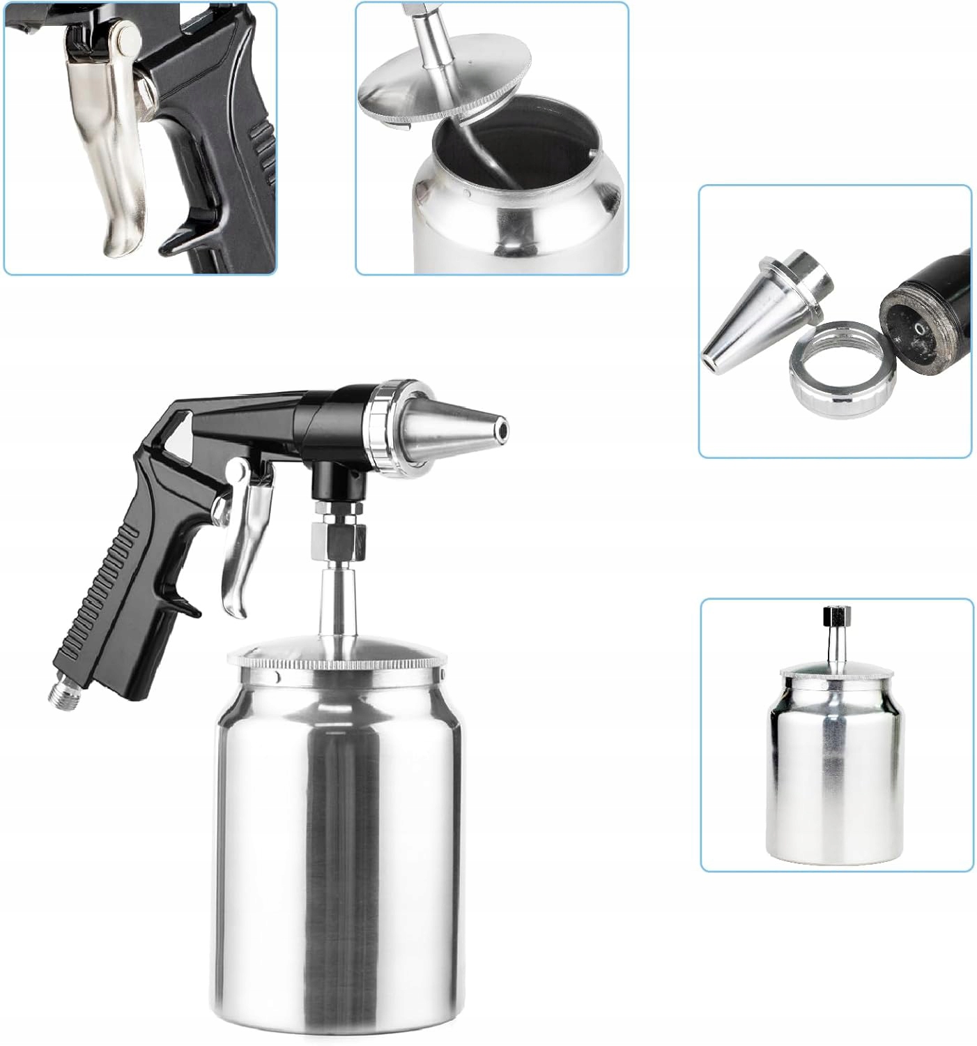 Пескоструйный пистолет оснащен очень большим распылительным контейнером для эффективного и универсального использования. Это поможет сэкономить драгоценное время в вашем рабочем процессе.