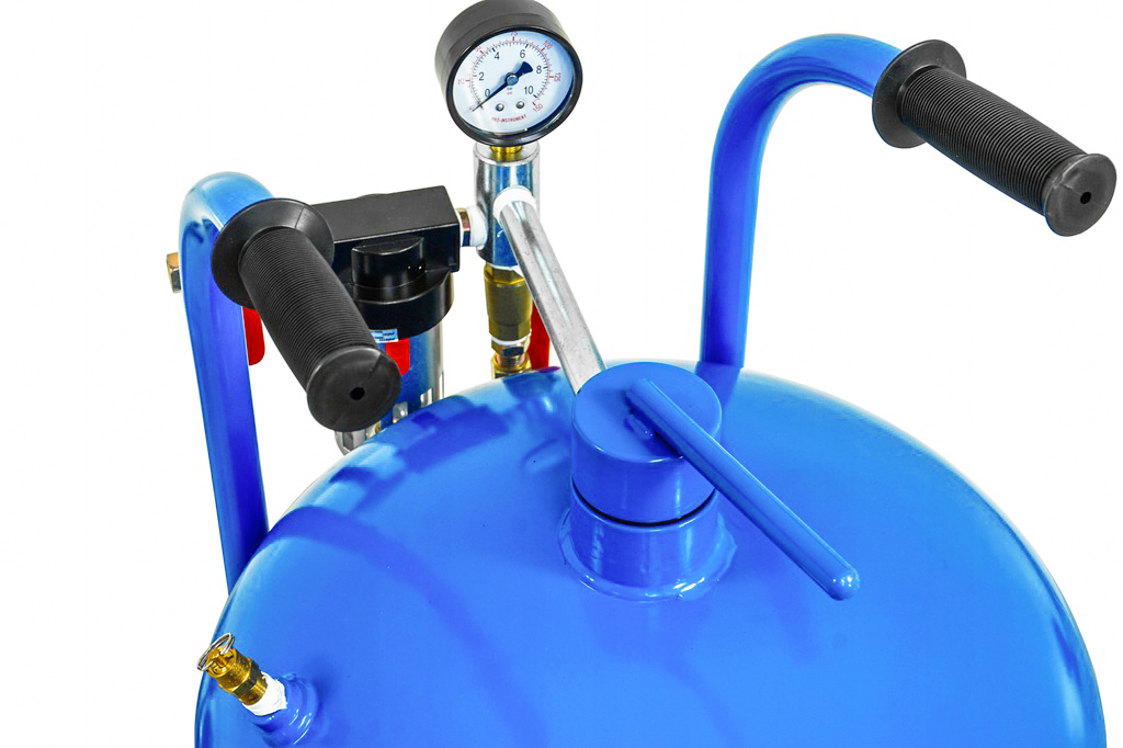 Пескоструйный аппарат оснащен специальным предохранительным клапаном, защищающим его от расширения в случае слишком высокого давления.