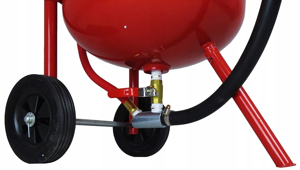 Пескоструйный аппарат оснащен резиновыми колесами и удобными ручками, облегчающими его перемещение и повышающими комфорт оператора.