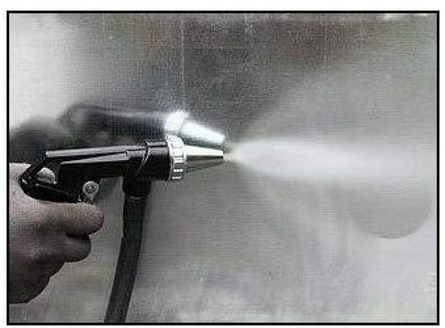 - Очистка осуществляется с помощью струи сжатого воздуха и абразивного материала.