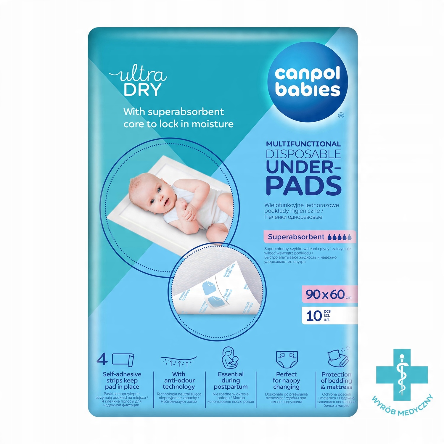 Особенности одноразовых гигиенических прокладок Canpol Babies 90х60 см 10 шт. с самоклеящимися полосками