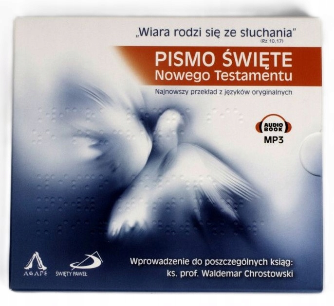 Вера рождается от прослушивания - это совместная издательская инициатива издания Святого Павла и Агапе. Святая Библия Нового Завета, последний перевод с оригинальных языков, на этот раз для прослушивания как аудиокнига MP3.