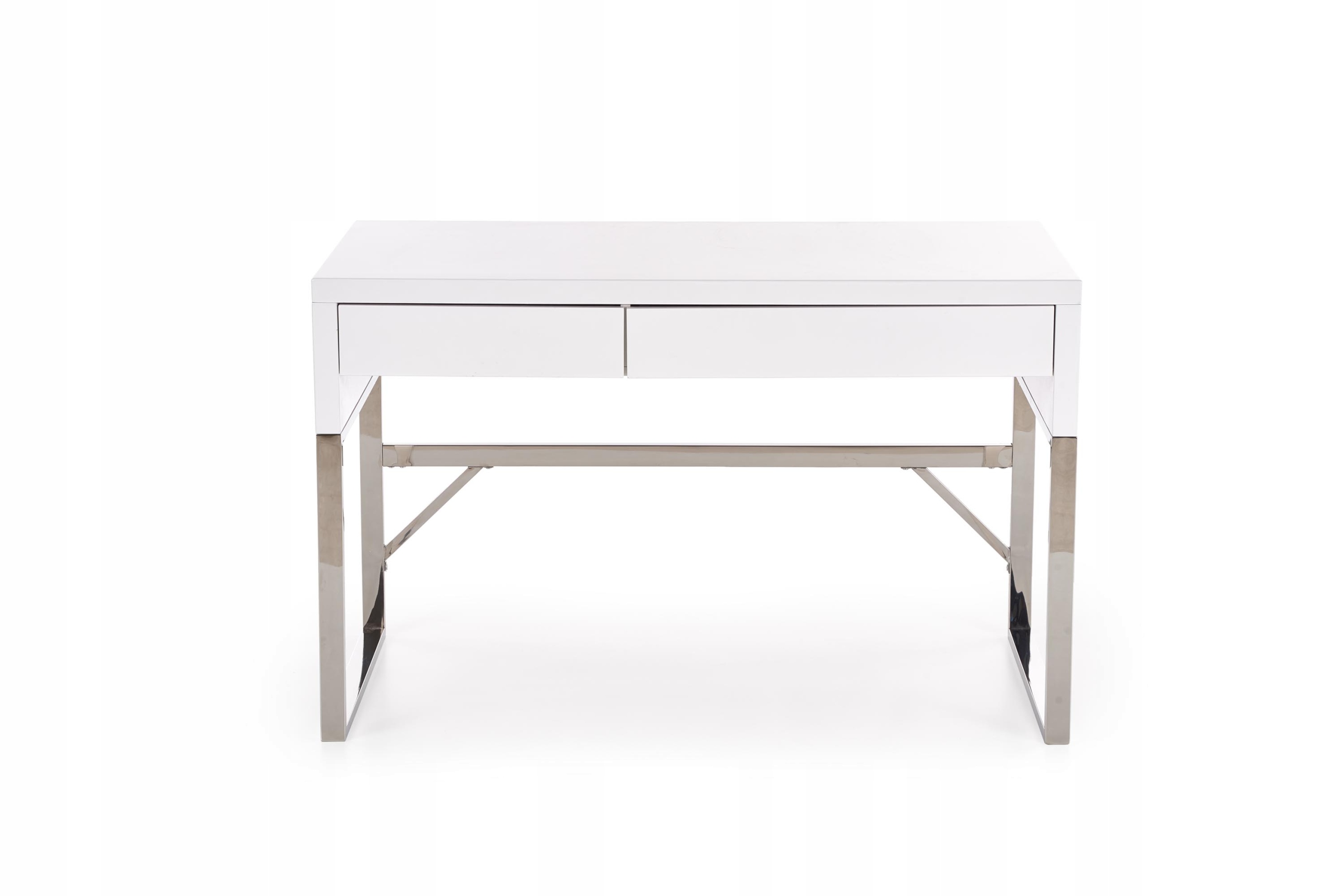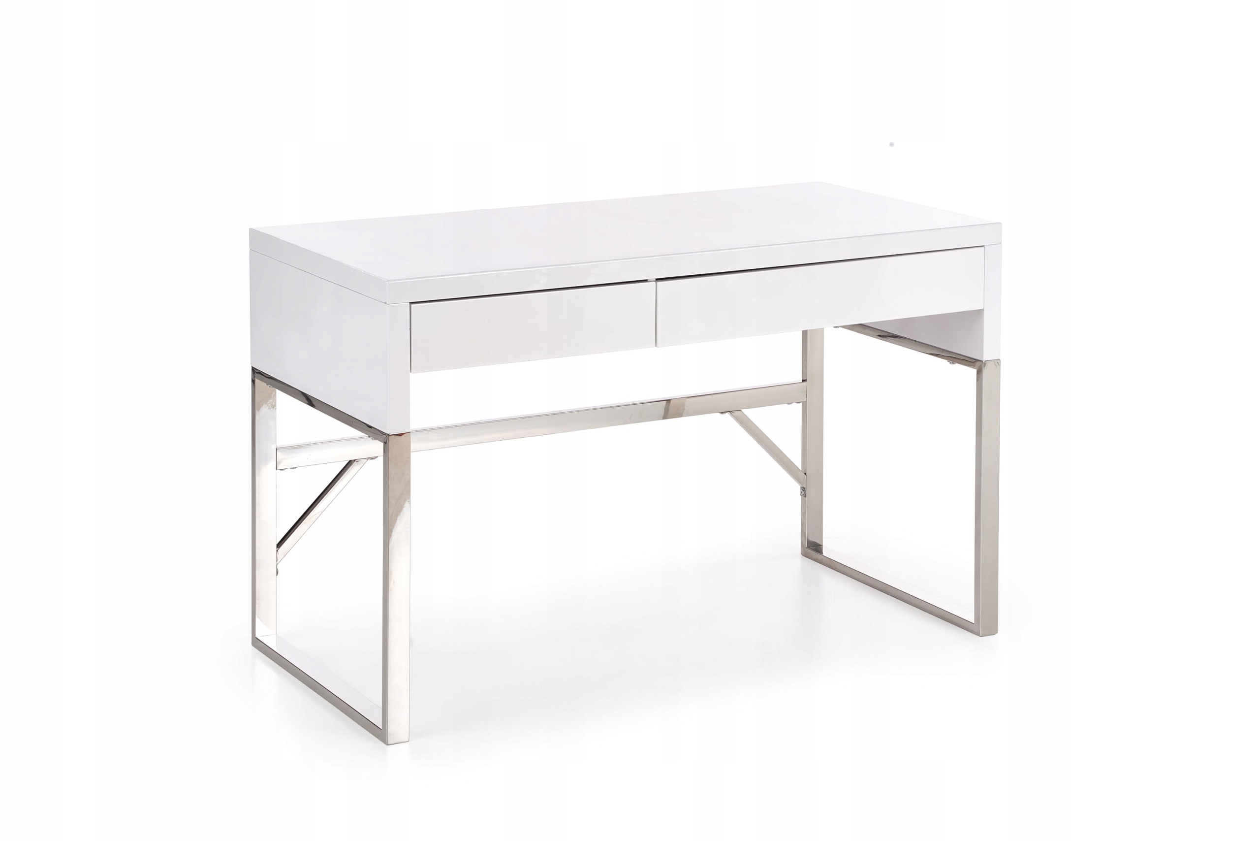 Письменный стол B32 – это предмет мебели, выполненный в современном стиле. Благодаря использованию элегантных материалов письменный стол легко впишется в наше офисное или домашнее рабочее место. Столешница размером 120 х 60 см изготовлена из МДФ, покрытого глянцевым белым лаком. Производитель решил разместить два асимметричных ящика спереди.