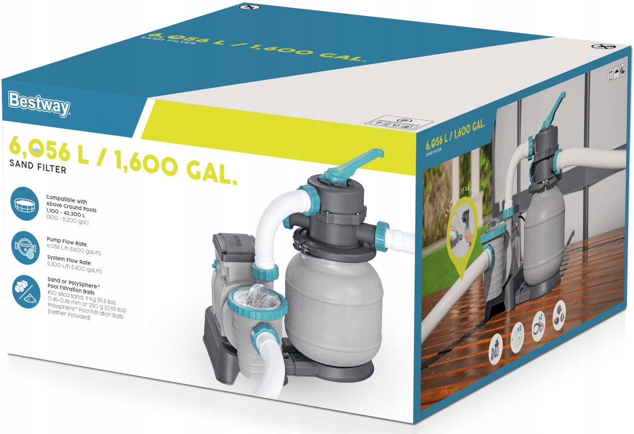 ПЕСОЧНЫЙ НАСОС ДЛЯ БАССЕЙНА 5678 л/ч + ПЕСОК 10 КГ - BESTWAY 58497 модель 2025 г.