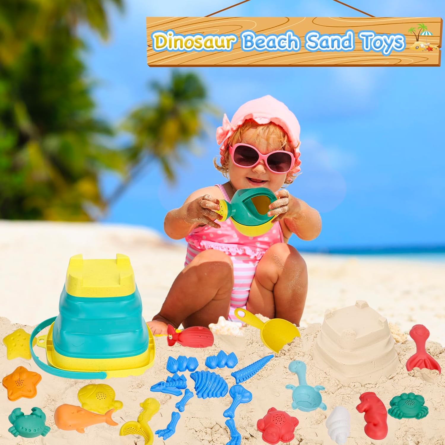 Huanuoda Детская игрушка для песка, набор пляжных игрушек, 25 предметов, динозавры, пляжные игрушки с силиконовым ведром для песка, игрушка для путешествий, формочки для песочницы, пляжная игрушка для детей