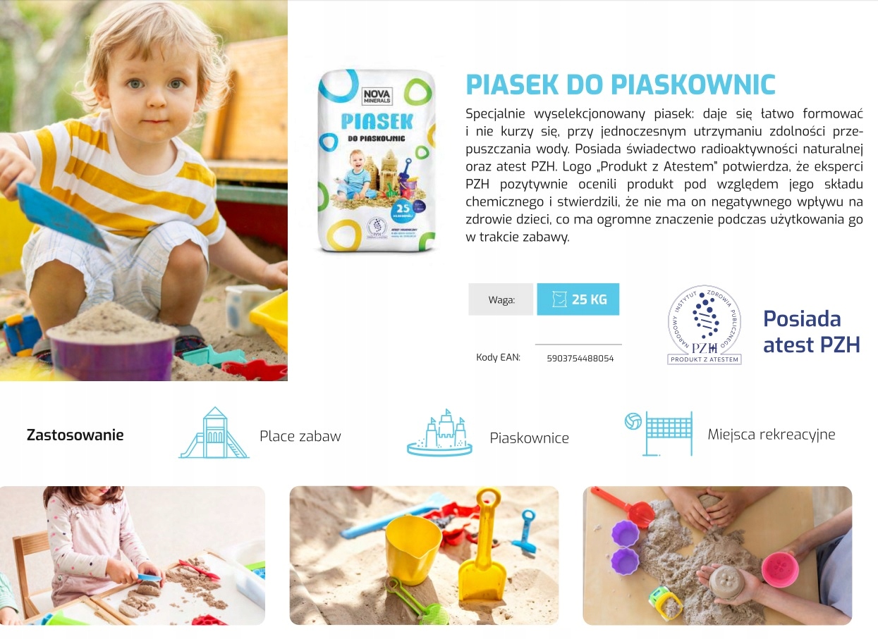 для вашего ребенка Специально подобранный песок: ему легко придавать форму, он не пылится, сохраняя при этом способность пропускать воду. Имеет сертификат естественной радиоактивности и сертификат ПЖ. Логотип «Товар с сертификатом» подтверждает, что специалисты ПЖ положительно оценили продукт по химическому составу и установили, что он не оказывает негативного влияния на здоровье, что имеет большое значение при использовании детьми во время игры.