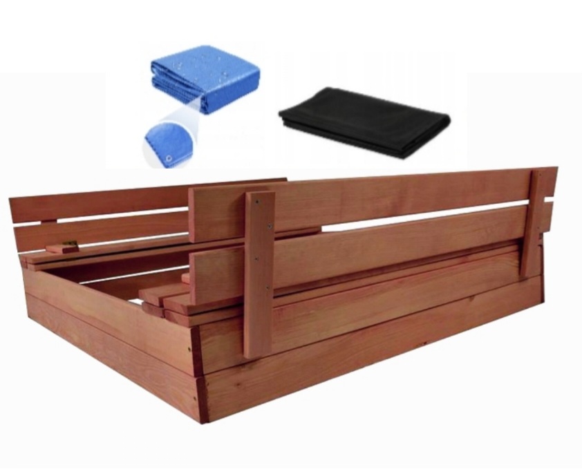 Песочница с скамейками закрыта 120x120 деревянная пропитка
