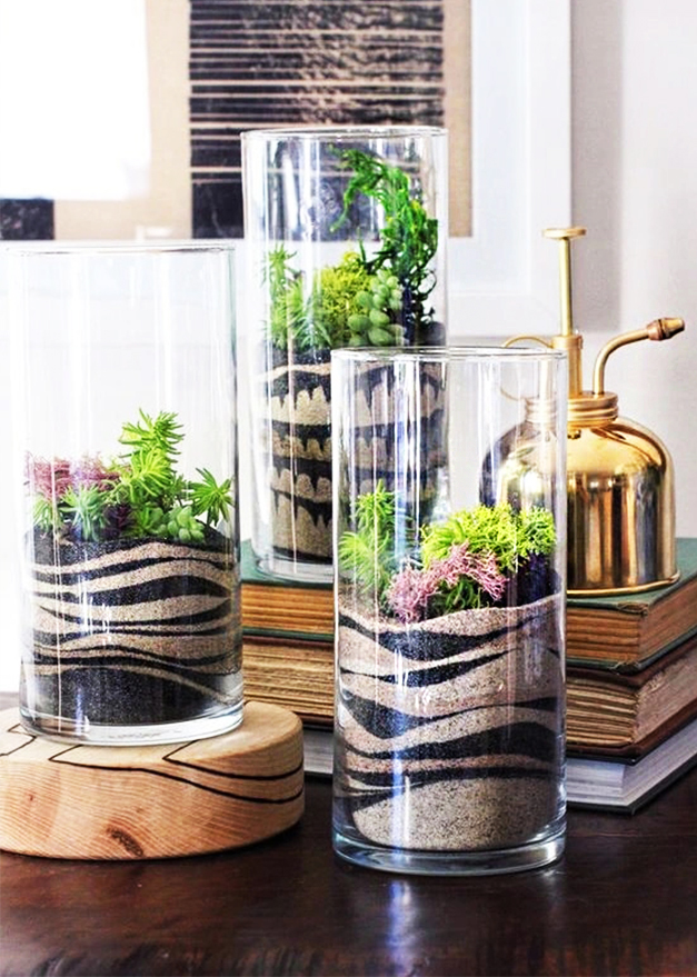 - минималистичные и тропические сады, лесные сады, крупные и средние композиции в стекле.