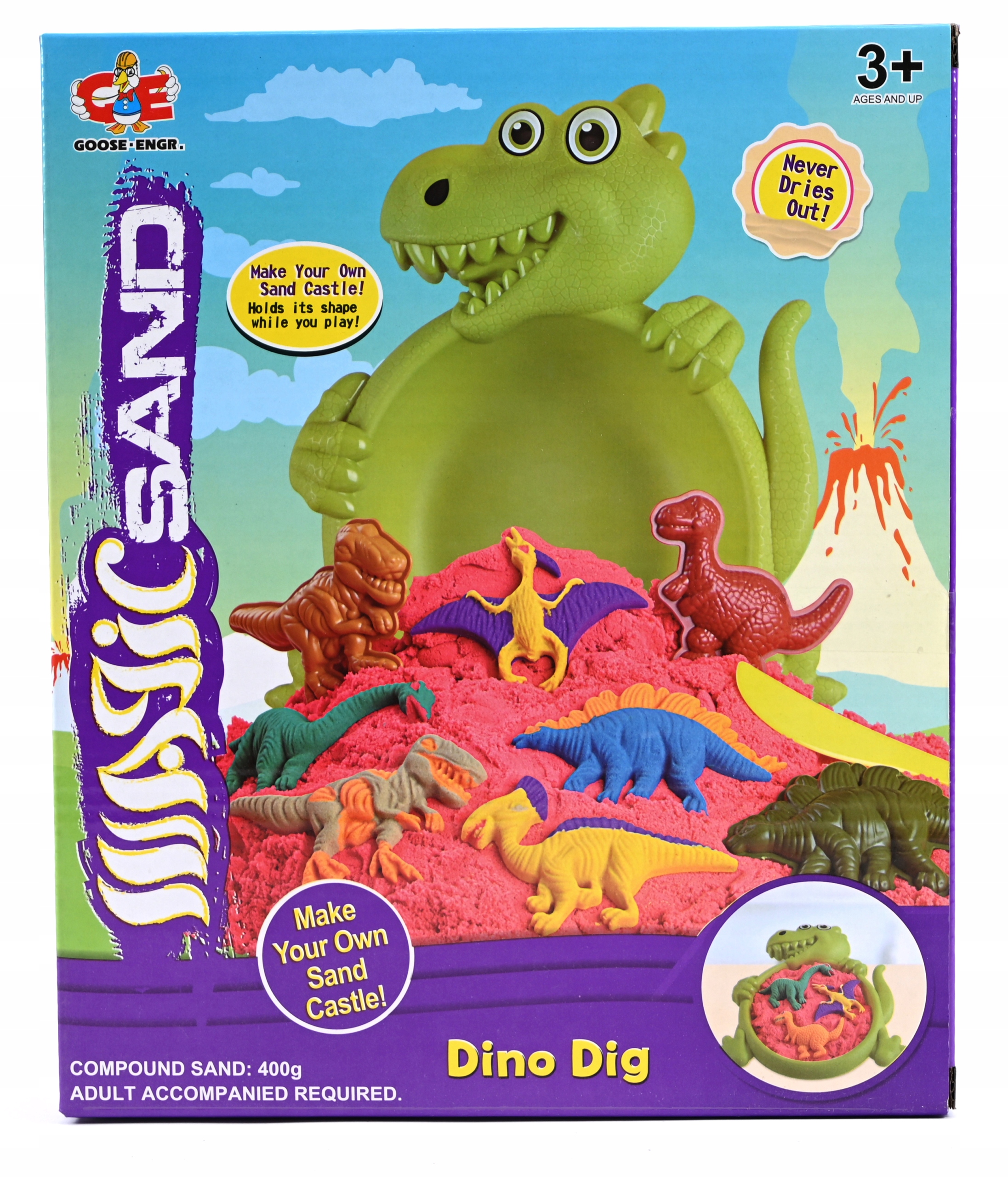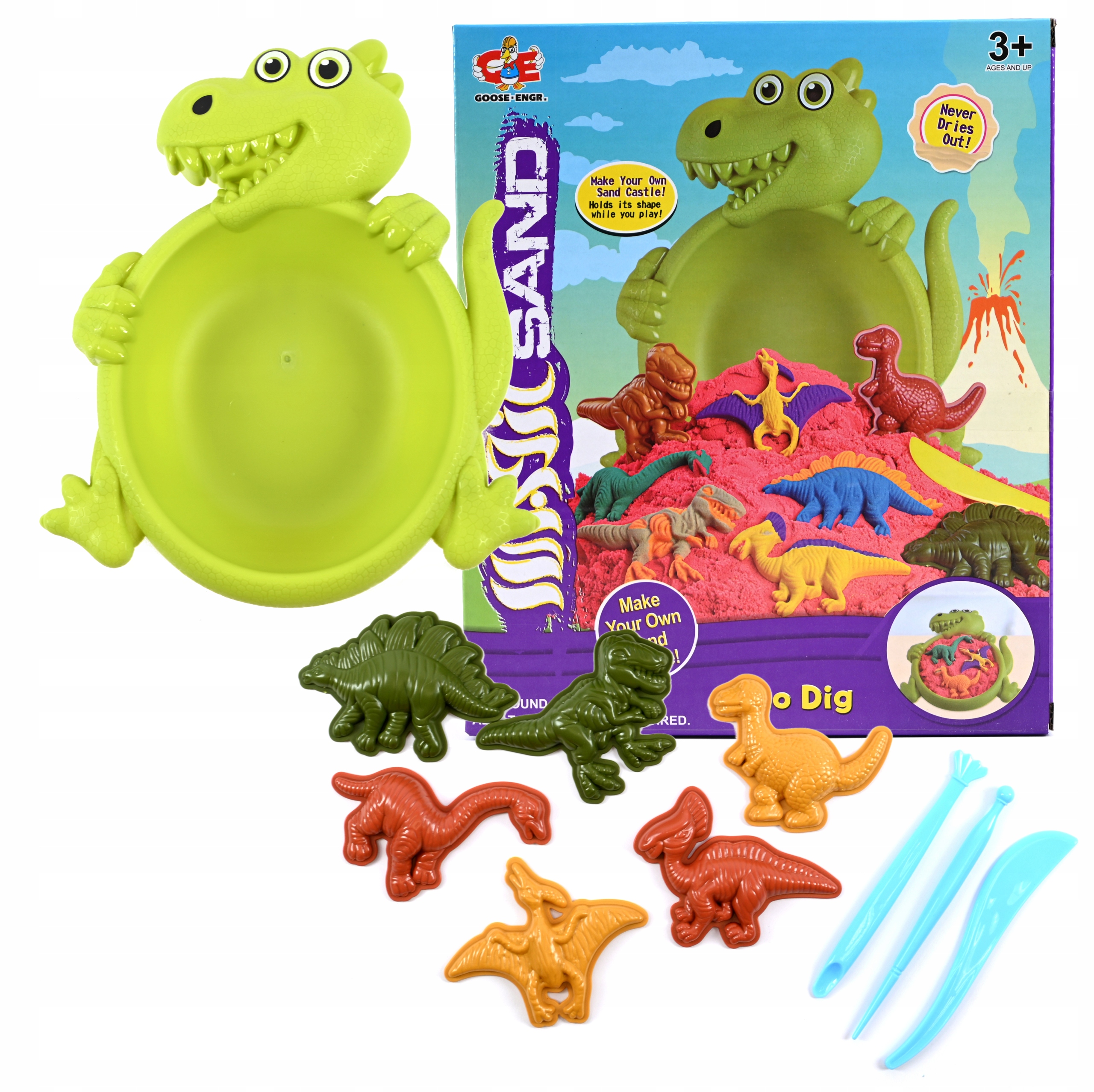 КИНЕТИЧЕСКИЙ ПЕСОК С ФОРМАМИ 400Г ПЕСОЧНИЦА ДИНОЗАВРЫ 2 ЦВЕТА ПЕСКА