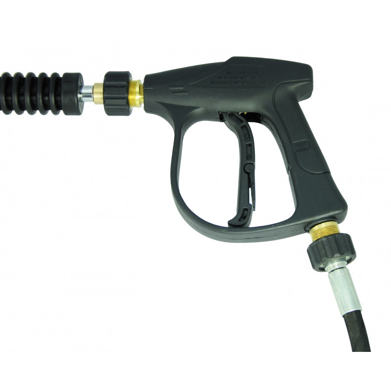 Резьба соединения пистолета PRESSON со шлангом и копьем M22x1,5 - соответствует стандарту, используемому в моечных машинах KARCHER HD, что делает его совместимым с большинство оригинальных аксессуаров KARCHER и других производителей, которые также используют соединения с резьбой M22x1,5.