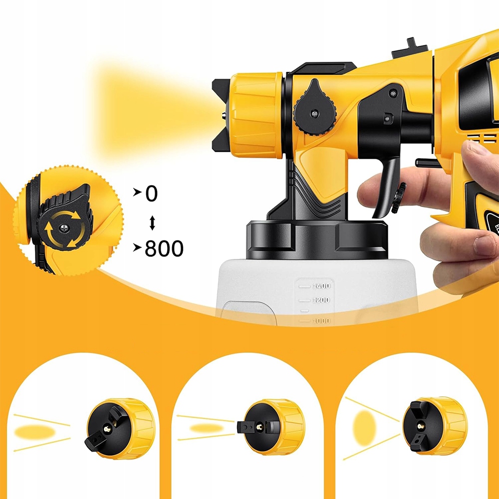 - Оснащен съемным контейнером емкостью 1400 мл, исключает необходимость частой дозаправки и подходит для опрыскивания потолков, заборов, шкафов, столы и стулья, стены, произведения искусства и т. д.