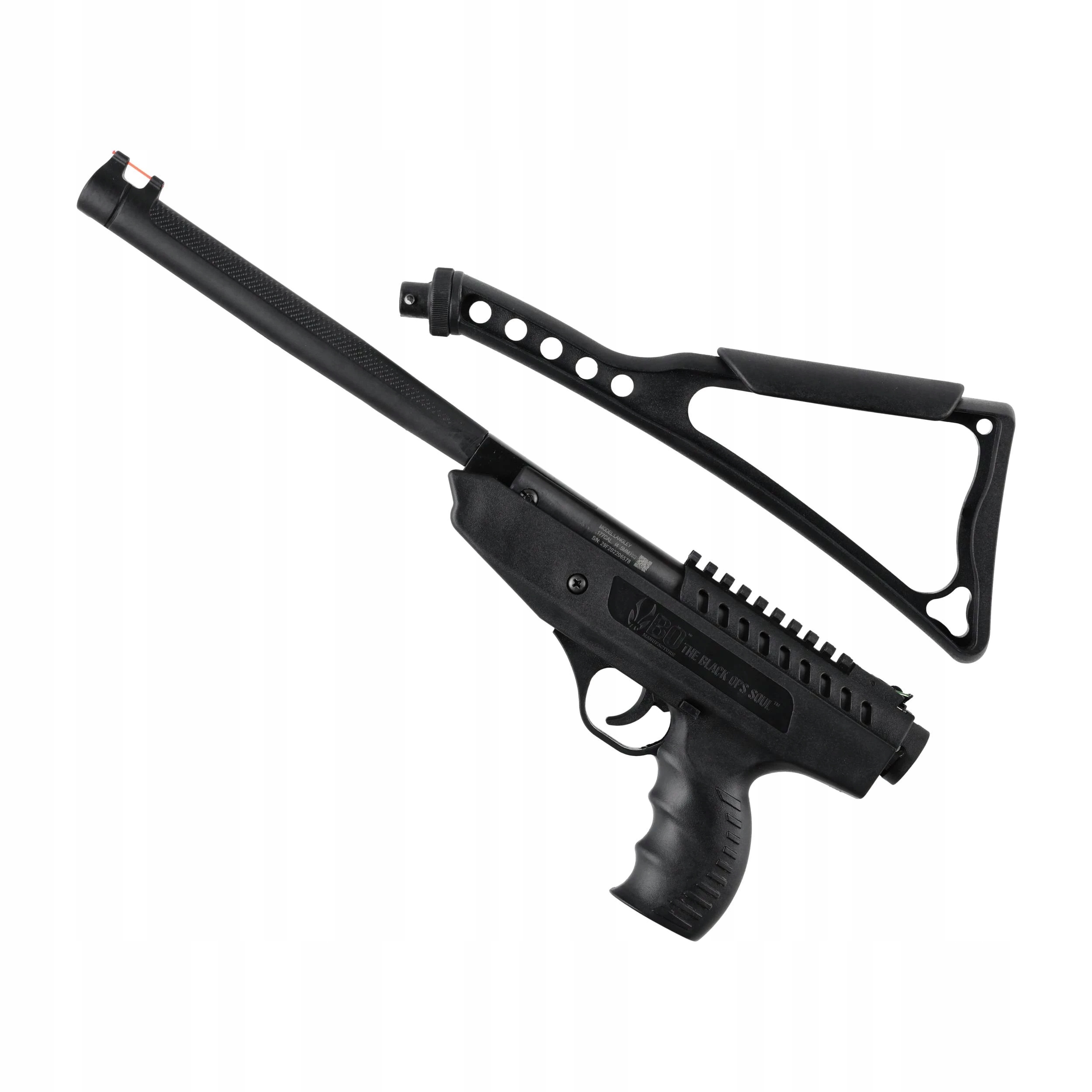 Также на поршневой камере имеется планка Пикатинни, которая также позволяет установить пистолетный прицел или коллиматорный прицел. В комплект входит съемная ложа, позволяющая устойчиво удерживать пневматический пистолет на плече. Благодаря такому функционалу пистолет можно быстро трансформировать в пневматическую винтовку, что благодаря дополнительной точке опоры позволяет вести точную и повторяемую стрельбу.