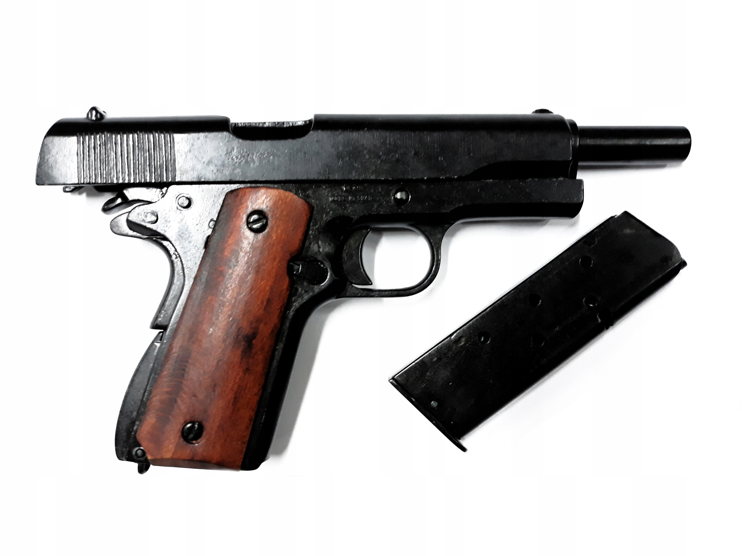Точная копия служебного пистолета армии США, знаменитого Кольта 1911 года, разработанного Джоном М. Браунингом. Этот пистолет создавался как продолжение серии пистолетов этого гениального конструктора, и предназначался для замены стоящих на вооружении револьверов калибра .38 Special, отличавшихся меньшей практической скорострельностью и ограниченной «убойной силой» пули. .