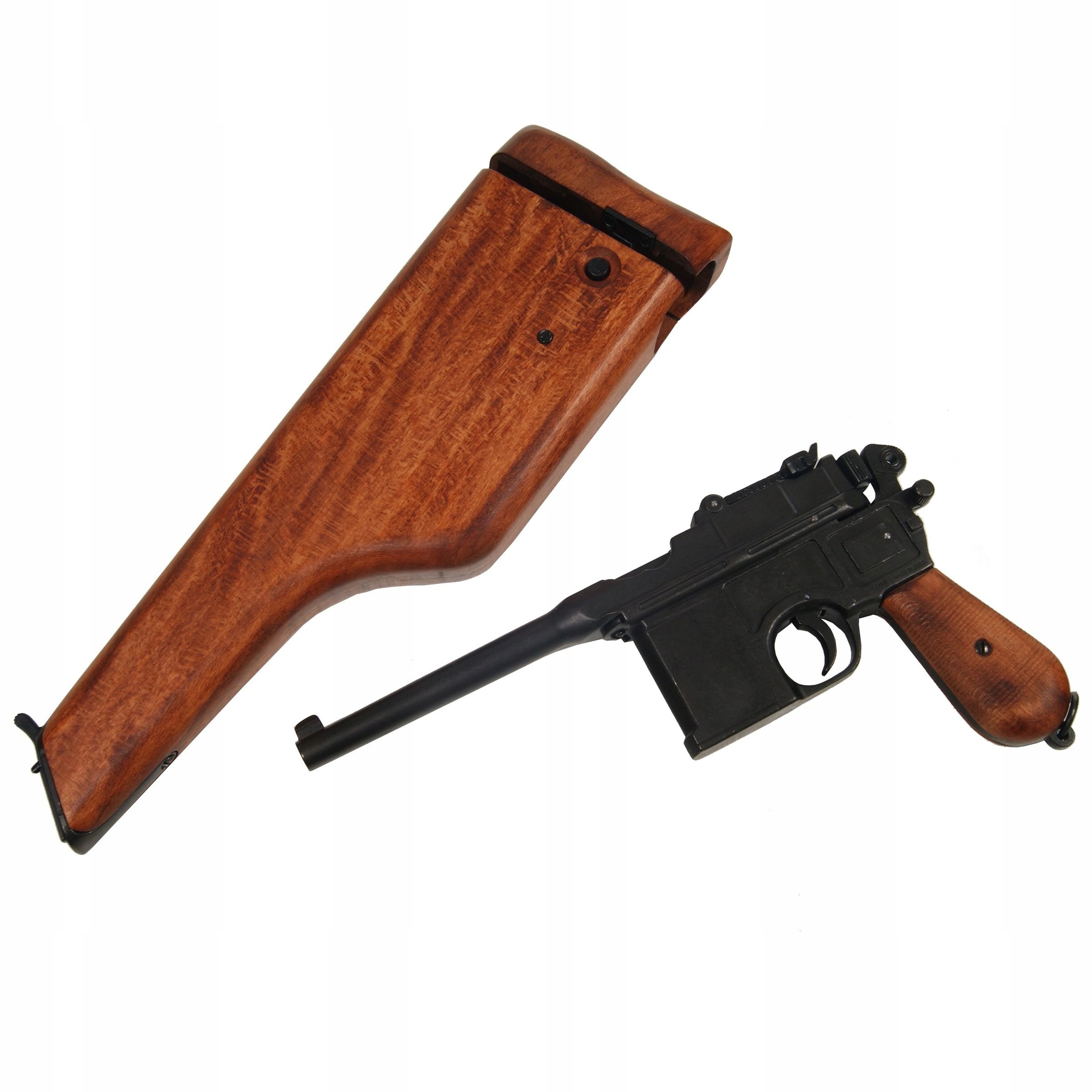 Точная металлическая копия культового немецкого пистолета Mauser C96 в деревянной кобуре. Вес и габариты ружья соответствуют оригиналу, спусковой крючок подвижный, возможна стрельба сухим выстрелом. Реплика не содержит каких-либо существенных частей оружия и не может быть переделана в оружие, поэтому полностью безопасна и не требует каких-либо разрешений или регистрации. Продукция известной компании Denix! Кобура совместима только с репликой Denix — отдельно она не продается. В нашем предложении также есть пистолеты без кобуры и копии кобуры, совместимые с острым оружием.