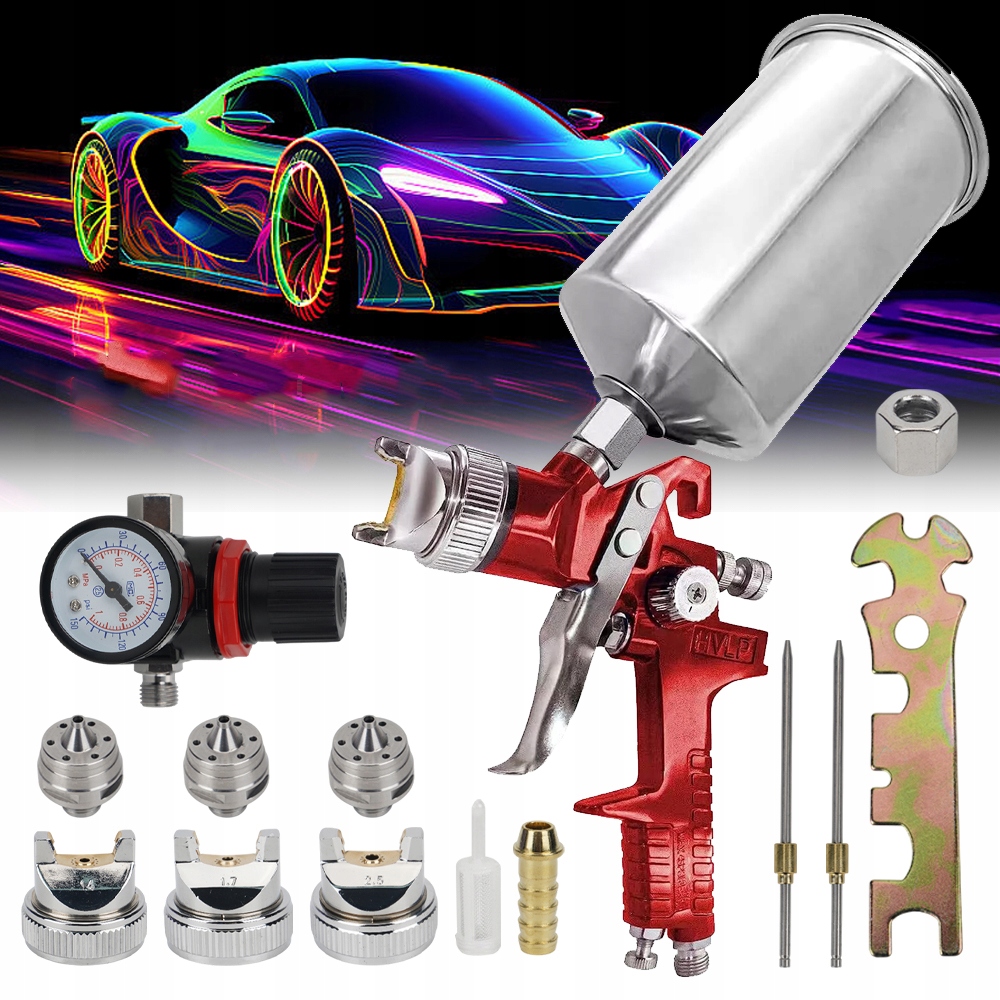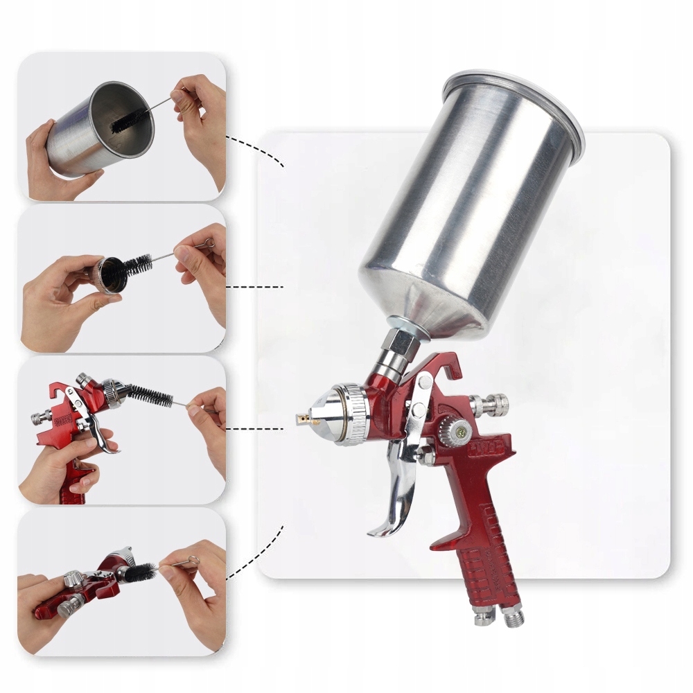 оснащены 3 жидкими сопла (1,4 мм, 1,7 мм, 2,5 мм) и регулируемые клапаны для потока, ширина распыления и давление воздуха, предлагая адаптированные эффекты спрея для различных задач.