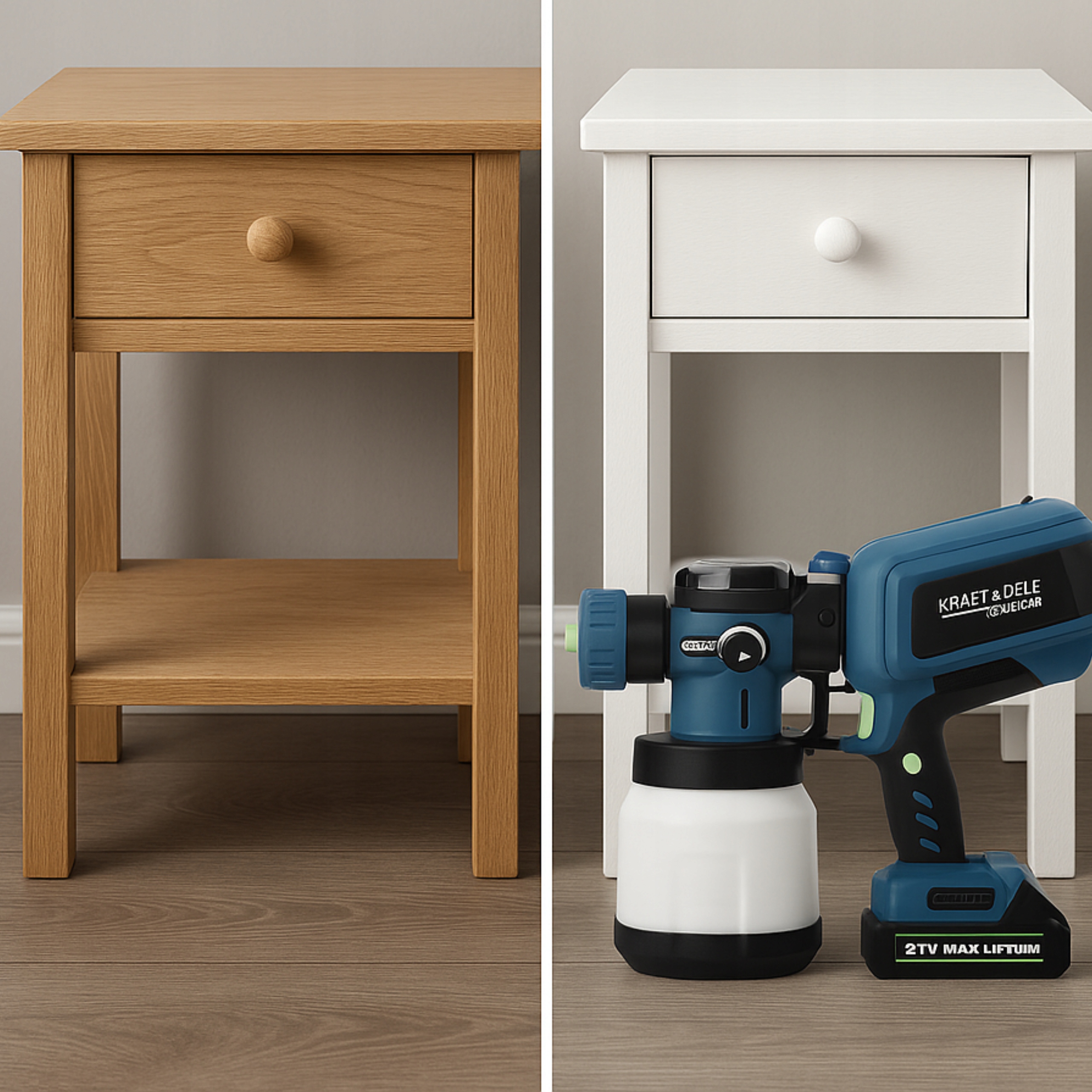 мобильный спрей -пистолет KD5480 21 V 1x2500 MAH + 1x1500 MAH - Профессиональная живопись без кабелей h2> ✴ Ваша портативная краска KD5480 польский бренд Kraft & Dele сочетает в себе мощность 300 Вт, вместительный бак на 1200 мл и эффективную батарею 21 V 2x2500 мАч, что позволяет вам работать без кабельных ограничений - идеально подходит для мебели, садовых элементов и автомобилей.