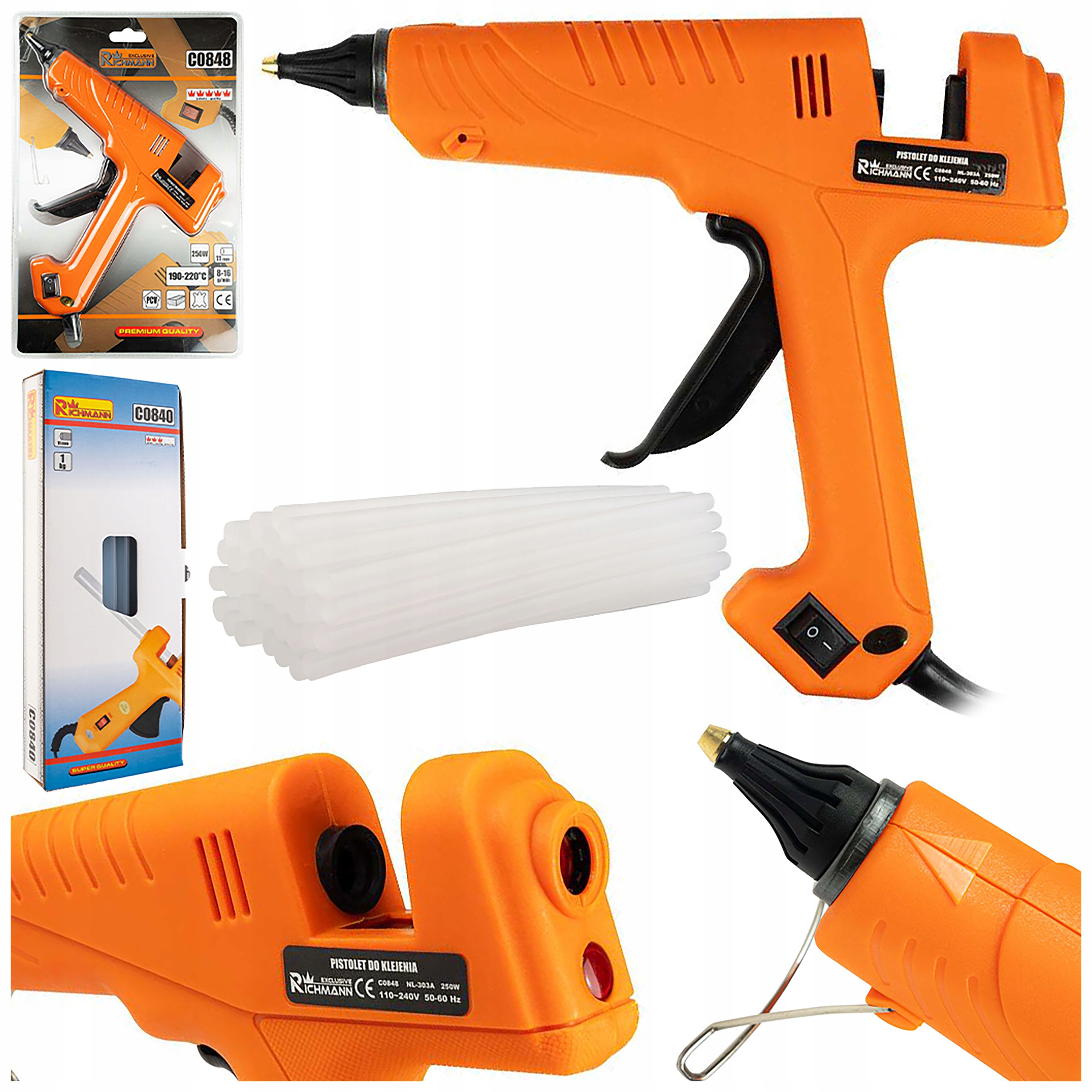 ПІСТОЛЕТ ДЛЯ ГАРЯЧОГО КЛЕЮ КЛЕЮВАЧ DIY МІЦНИЙ 250W + КЛЕЙ КАРТРИДЖІ 11 ММ 1КГ
