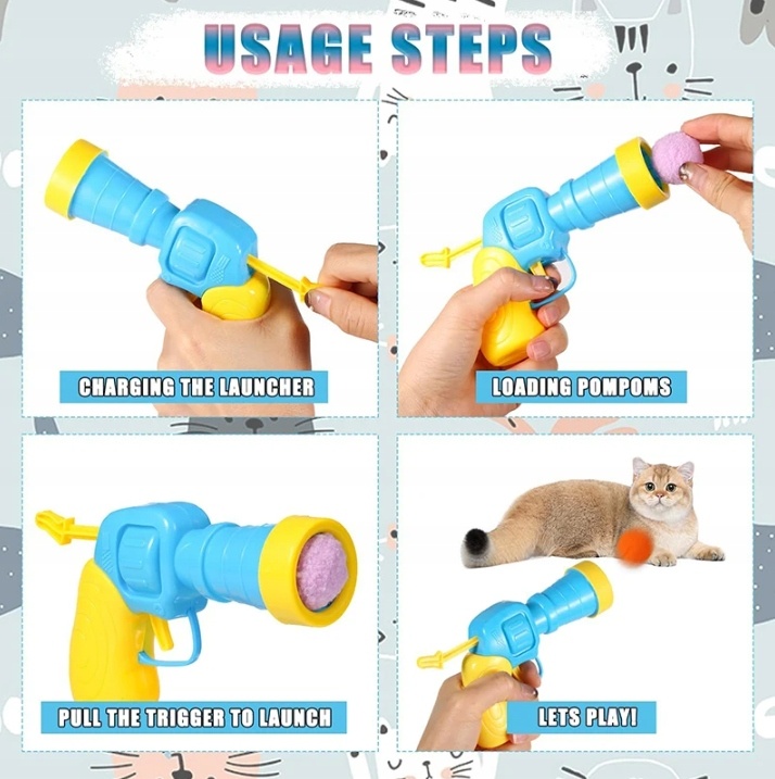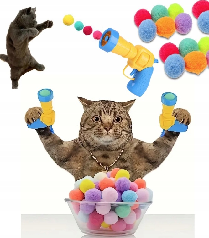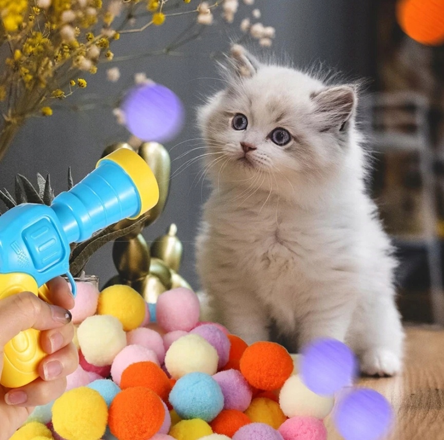 Пистолет для шариков помпоны + 50 кусочков плюшевых шариков для кошачьей собаки