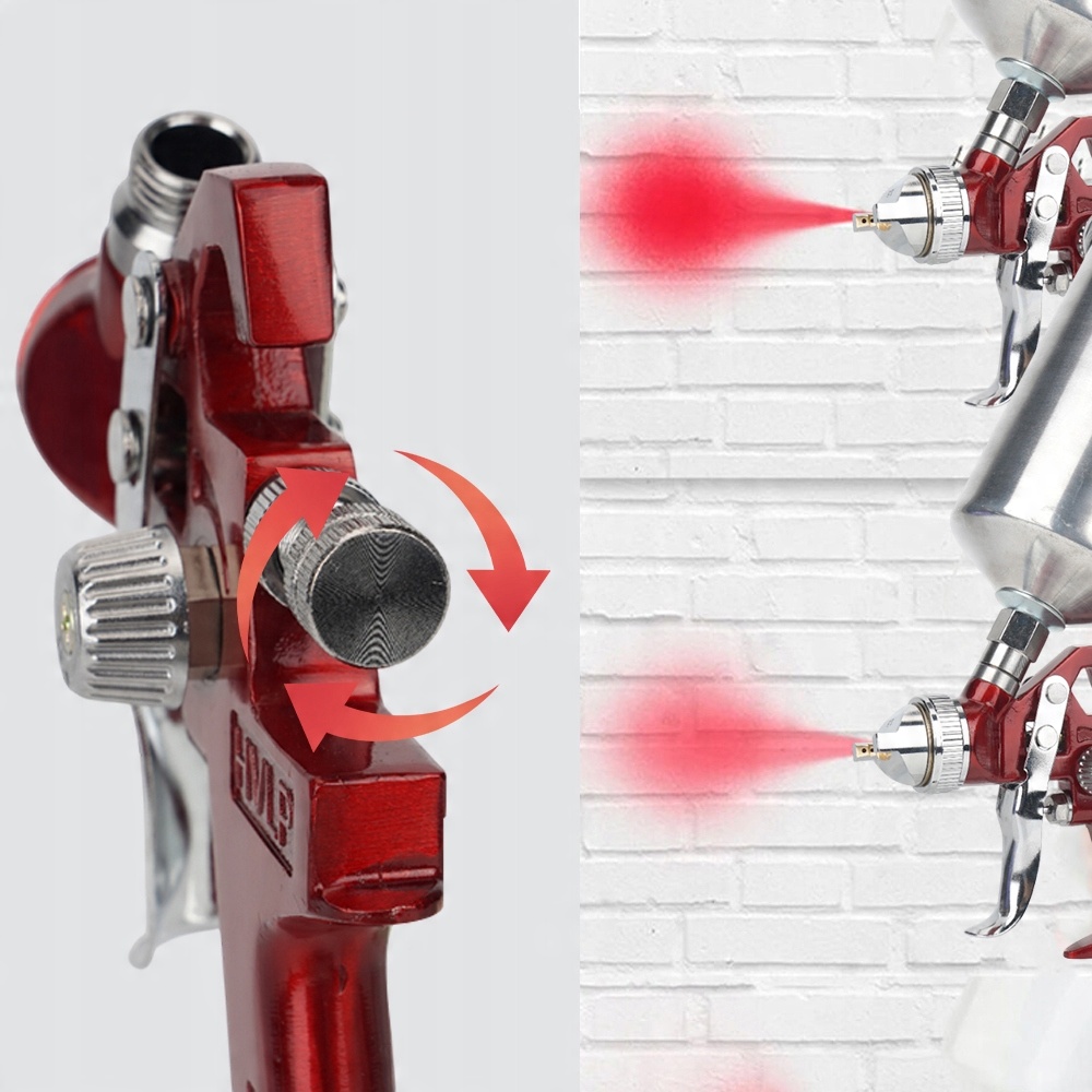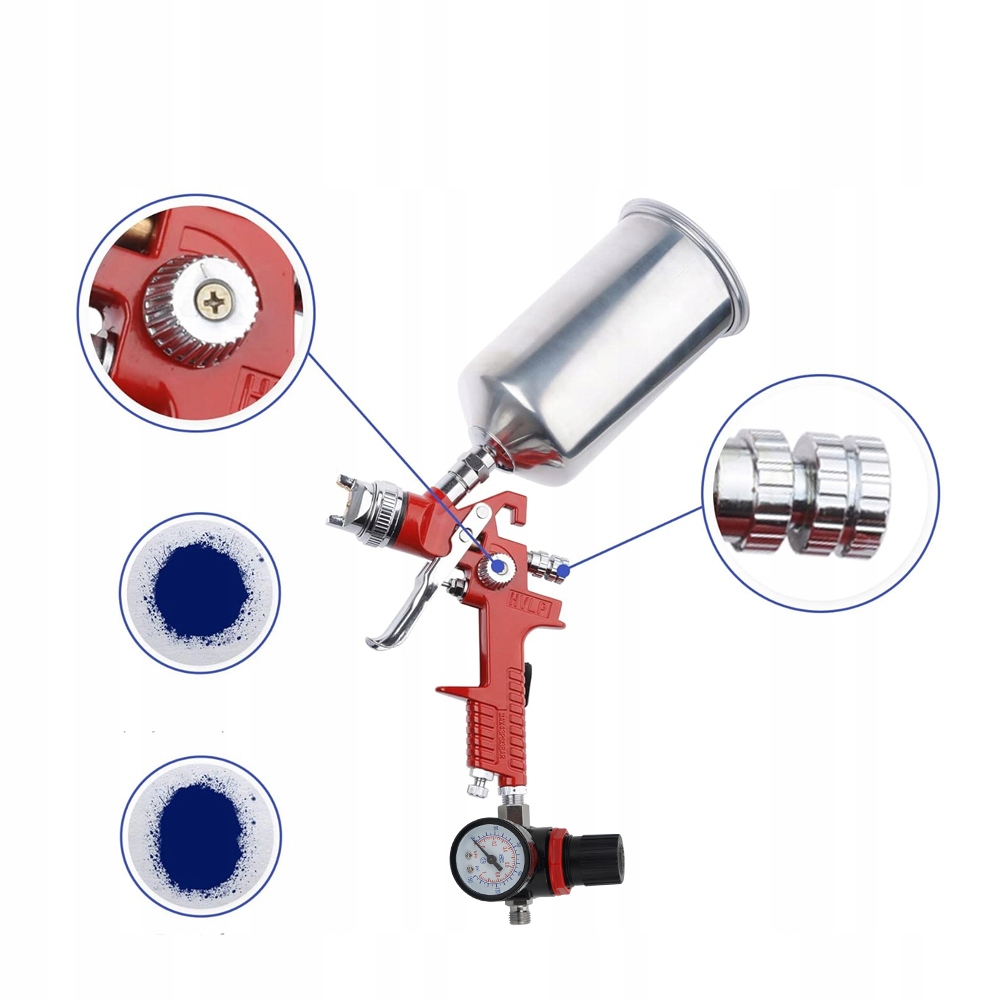 - Оснащены 3 жидкими сопла: 1,4 мм, 1,7 мм, 2,5 мм, регулирующий клапан потока, клапан, регулирующий ширину распыления, давление воздуха, которое может дать различные эффекты.