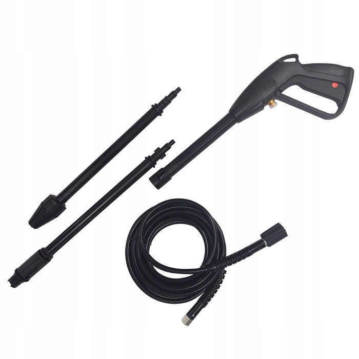 Очень качественная замена пистолету с копьем и соплом. Эргономичный дизайн и высококачественный материал делают этот пистолет одним из аксессуаров высочайшего класса для моек высокого давления. Имеет регулируемую насадку (плоскоструйную, точечную). Подходит для шайб LAVOR, MAKITA, BLACK&DECKER и других шайб с насадкой для шланга M22x1,5 мм: