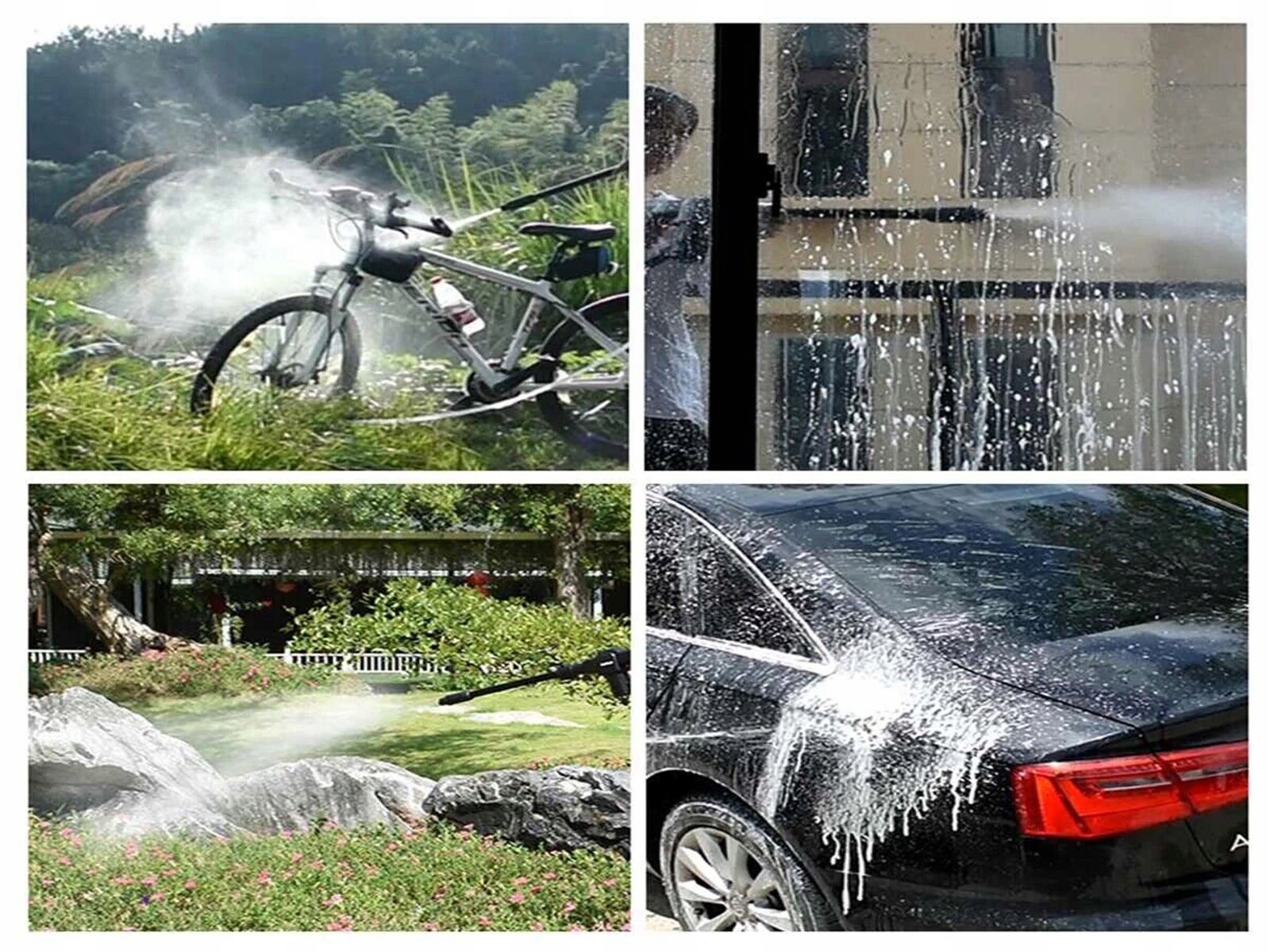 - Идеально подходит для удаления грязи с транспортных средств, таких как автомобили, велосипеды, уличные поверхности дома, лестницы, заборы и уличная мебель.