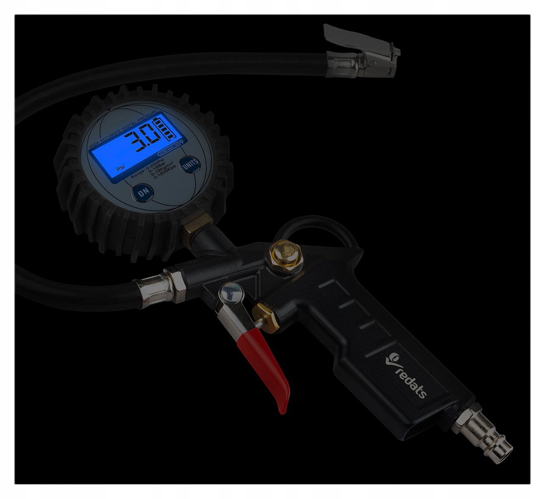 Пистолет для накачивания с электронным манометром, питание от двух батареек типа ААА, резиновая крышка манометра, клапан выпуска воздуха под большим пальцем, возможность установки единиц измерения: Пси, Бар, кг/см2, диапазон кПа 0-255. Psi, 0–18 бар, 0–18 кг/см2, 0–1800 кПа, стандартная быстроразъемная вилка