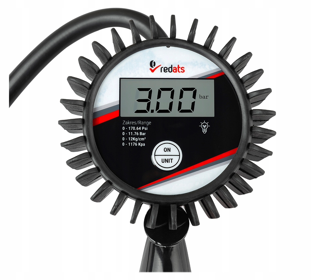 Манометр находится в прорезиненном корпусе – риска его повреждения нет, даже если он упадет на землю.
